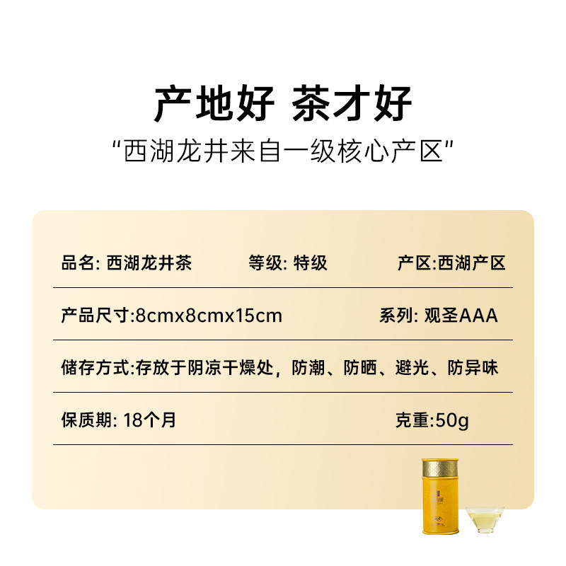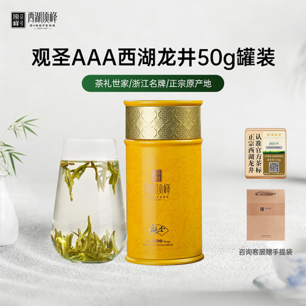 【观圣AAA】2026新茶预售顶峰西湖龙井茶50克罐装梅家坞明前绿茶