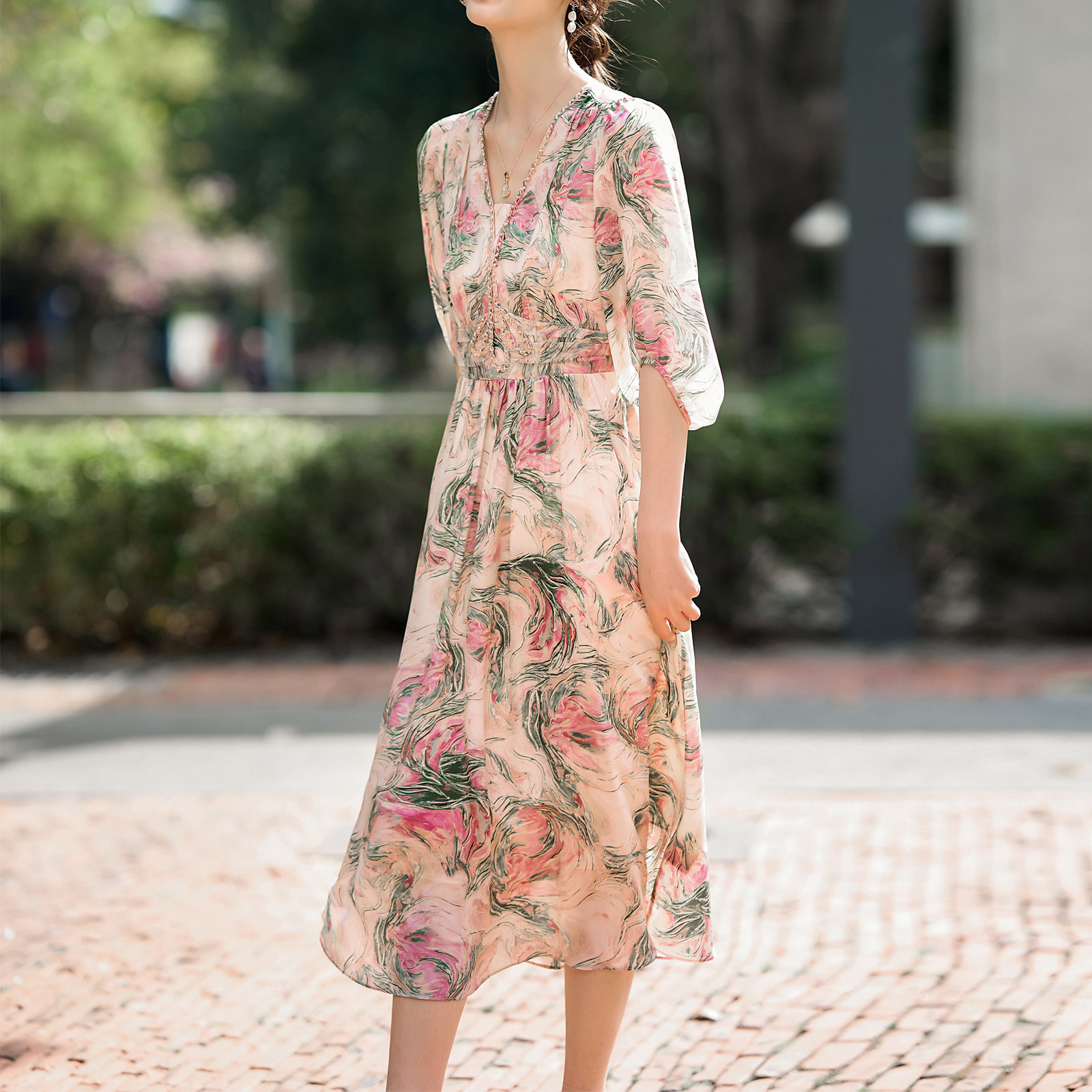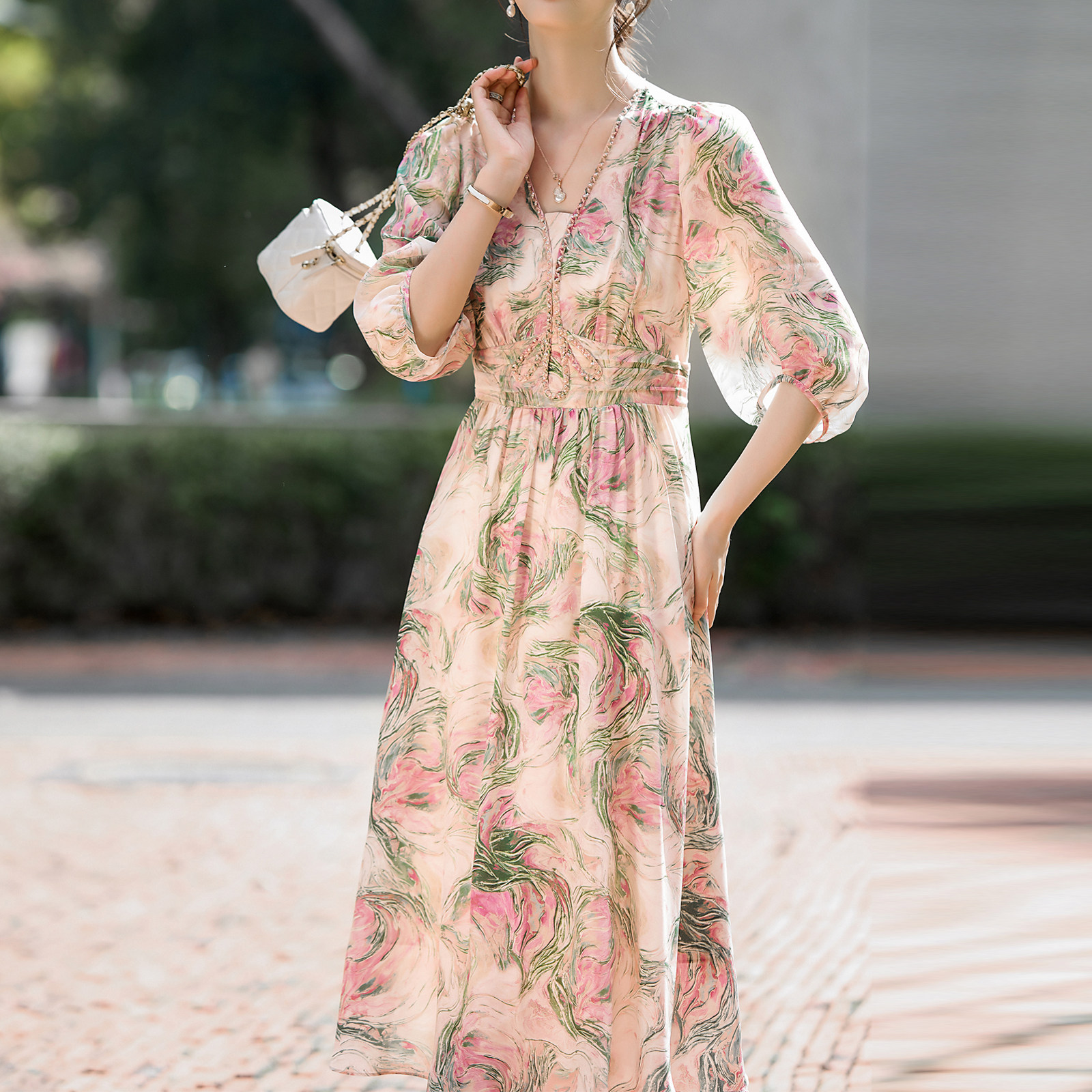 迪奥氛围感气质优雅真丝连衣裙女