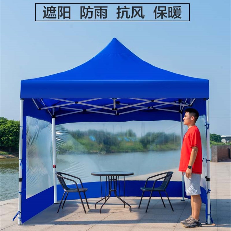 四脚雨棚户外防h雨遮阳棚摺叠伸缩式四角摆摊帐篷大伞透明加厚围