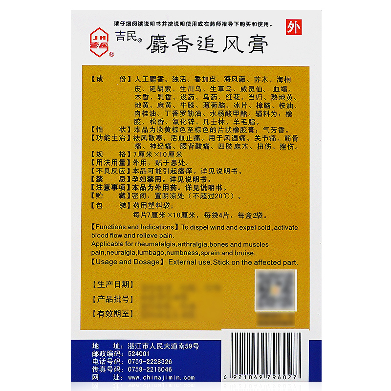 【吉民】麝香追风膏7cm*10cm*8贴/盒