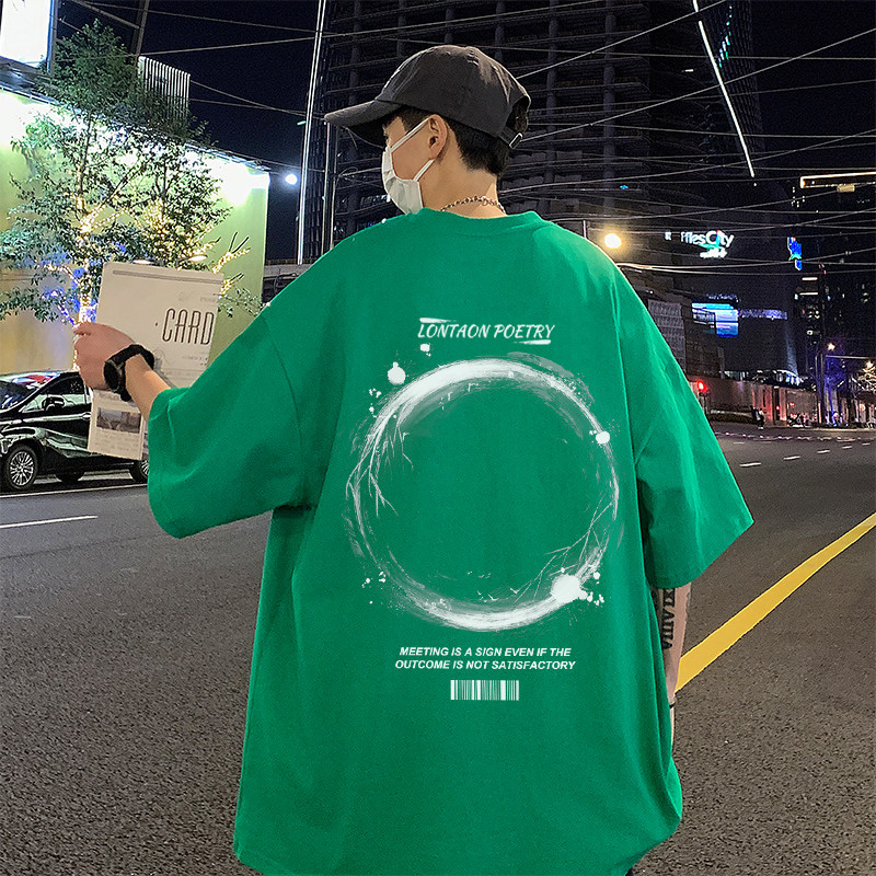 特大码300斤绿色薄款t恤男女夏季纯棉短袖美式复古印花半袖体恤