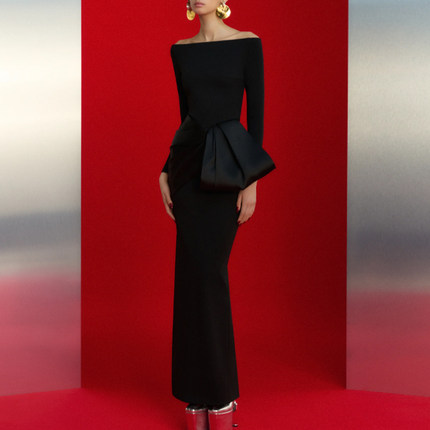 晚礼服长款气质优雅2025新款高级质感年会晚宴时尚一字肩连衣裙女