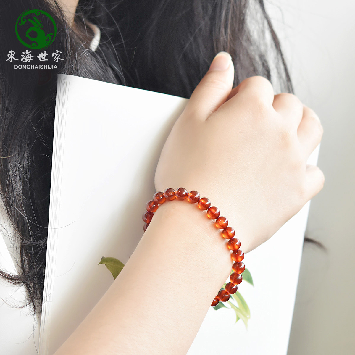 橙红石榴石手串东海水晶玛瑙玉髓翡翠宝玉石单圈散珠子芬达石手链