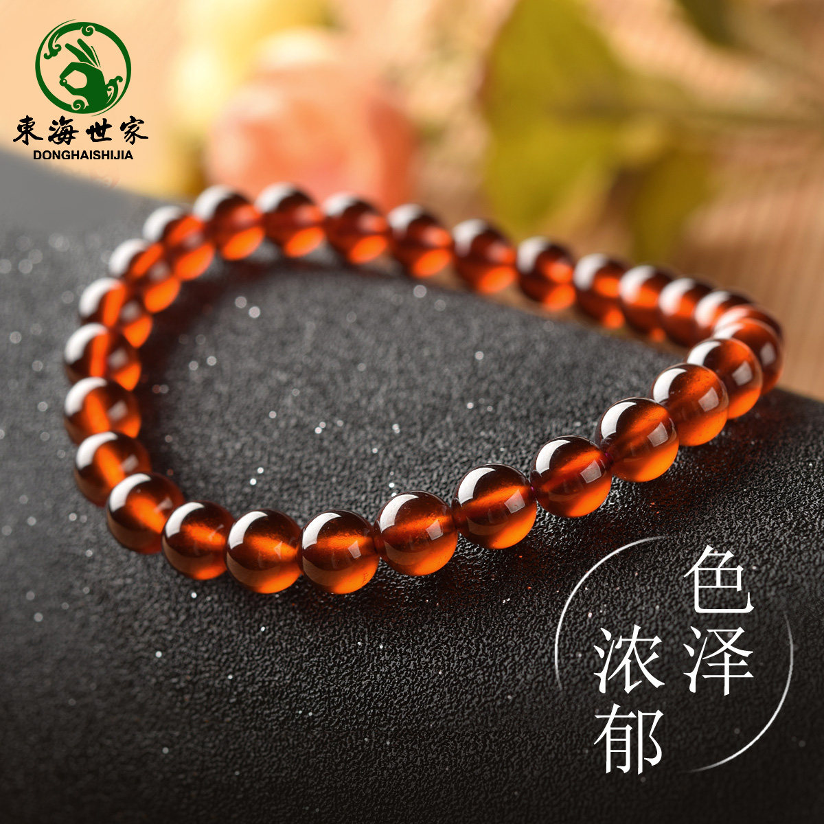 东海世家多圈水晶散珠橙红石榴石
