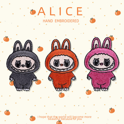 可爱小怪兽刺绣贴自粘手账书包装饰贴iPad收纳衬衫布贴衣服补丁贴