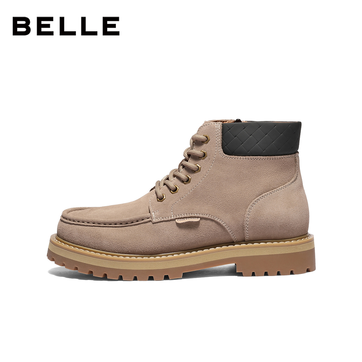 百丽男鞋休闲马丁靴男士25新款冬季工装靴加绒东北靴棉鞋A2289DD5