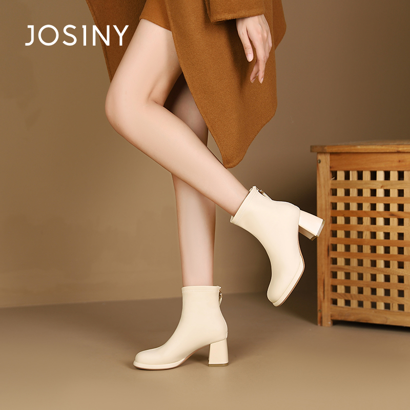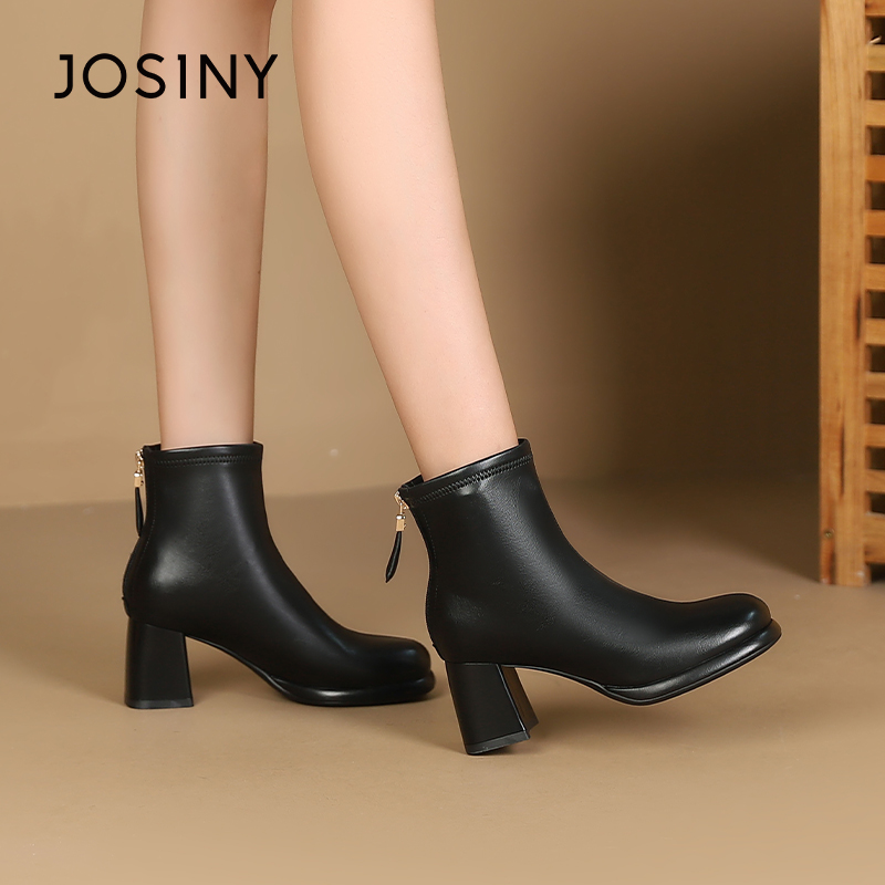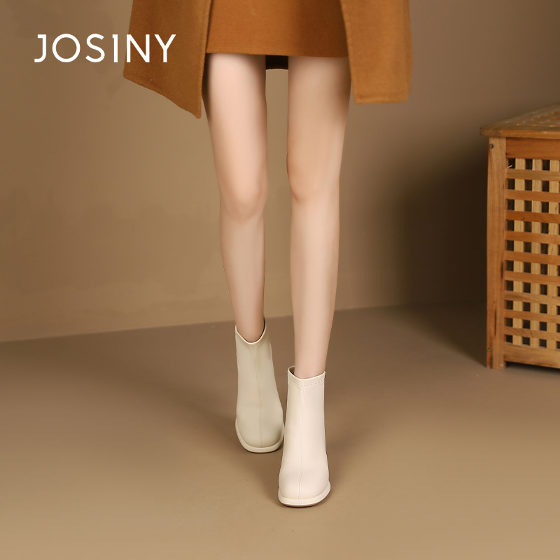 卓诗尼冬季女靴撤柜正品简约利落切尔西靴秀气方圆头稳当粗跟舒适
