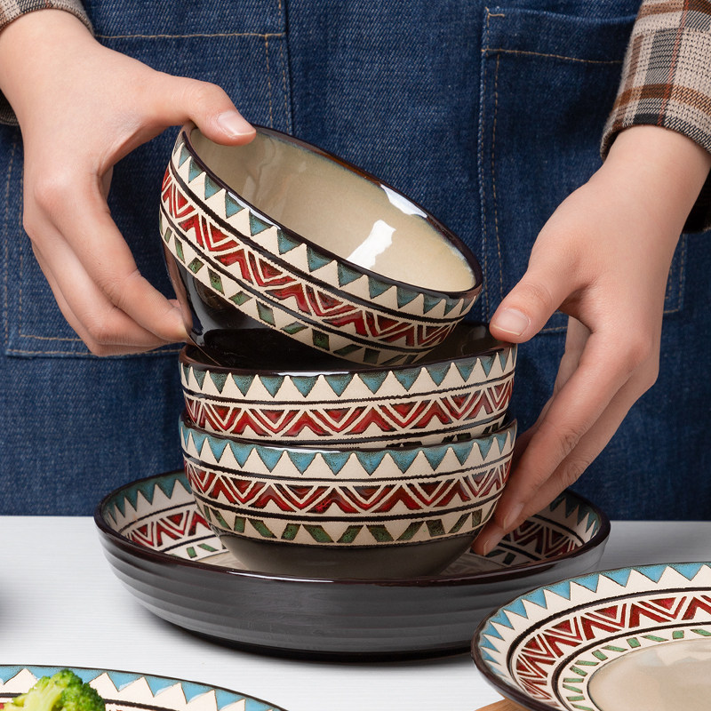 陶瓷盘菜盘家用美式复古创意个性精致餐盘饭碗碗碟组合微波炉餐具