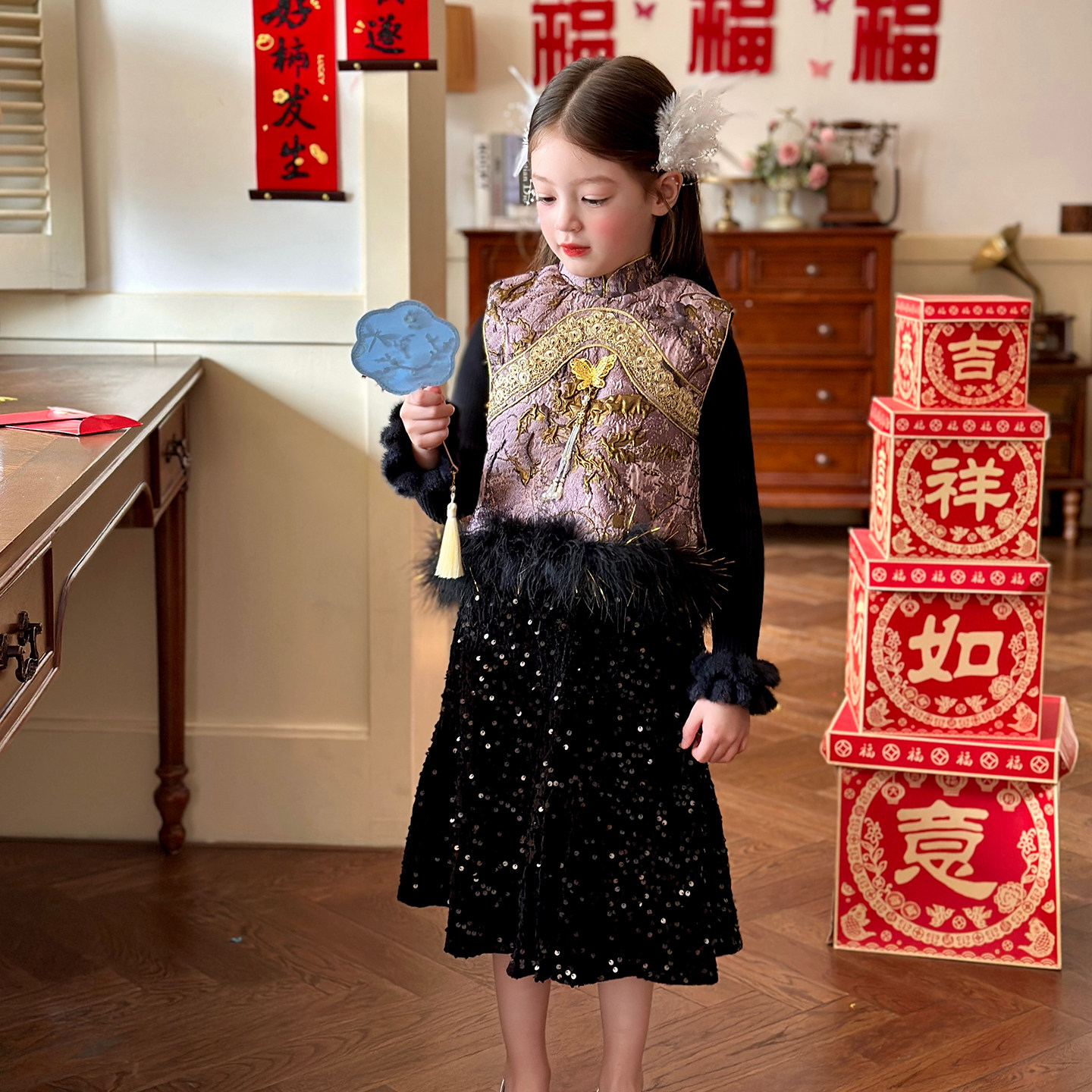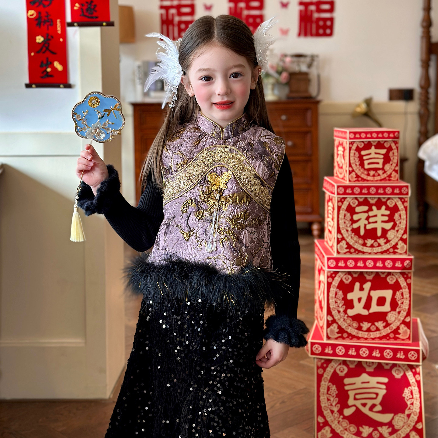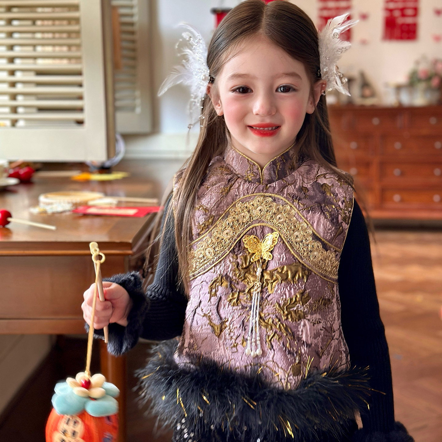 栀了成长记女童装国风唐装马甲上衣2025冬季儿童新中式夹棉拜年服