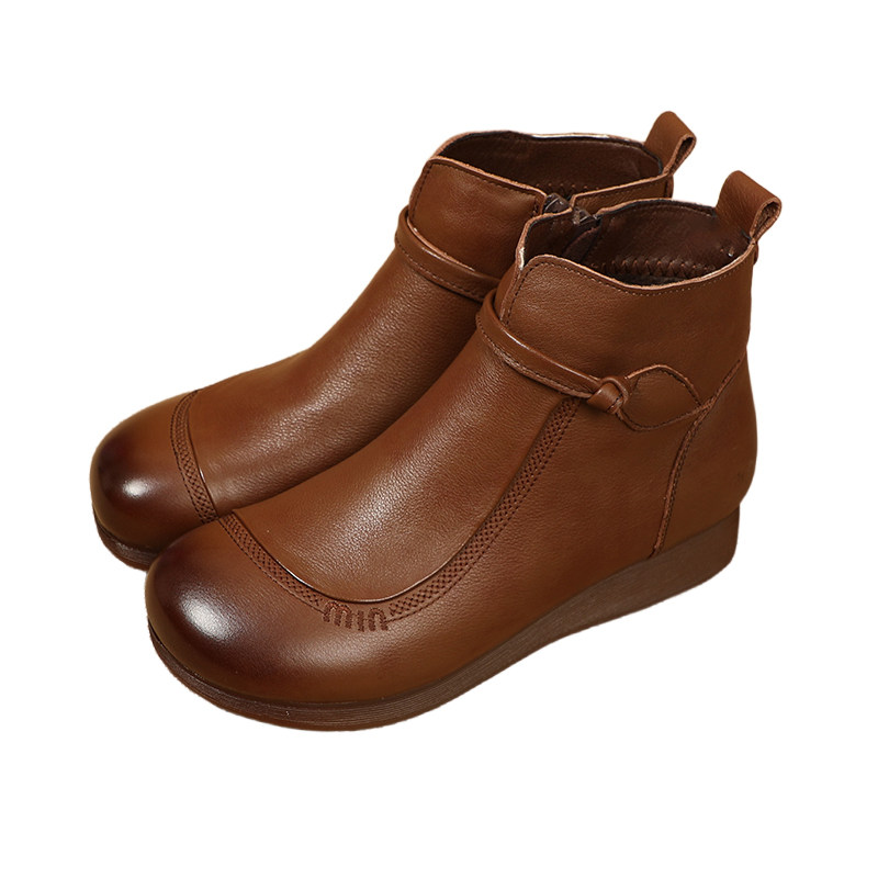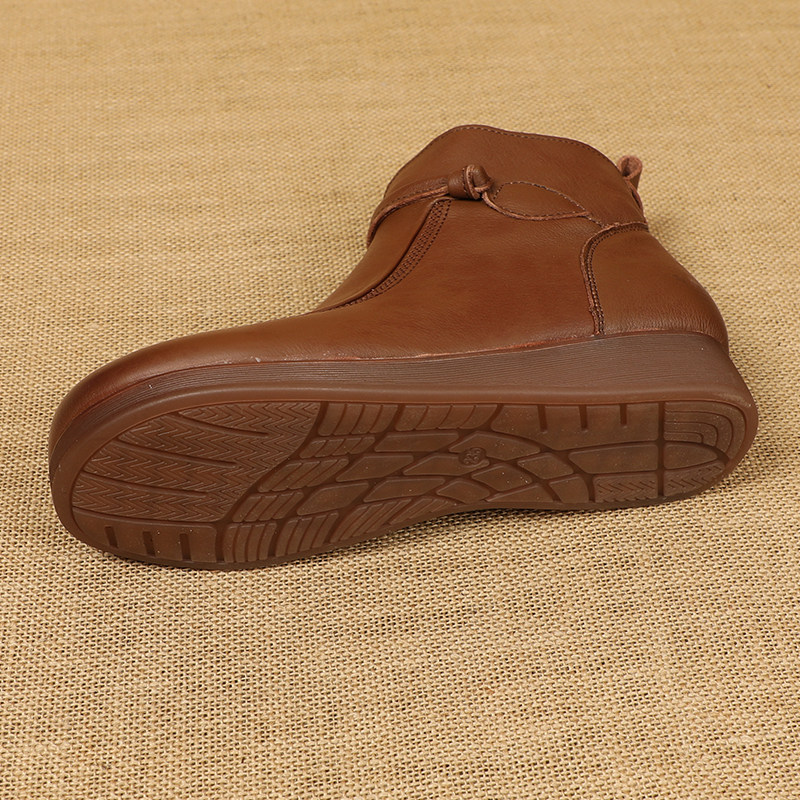 秋冬女靴子新款牛筋软底牛皮短靴复古真皮中老年妈妈单靴厚底休闲