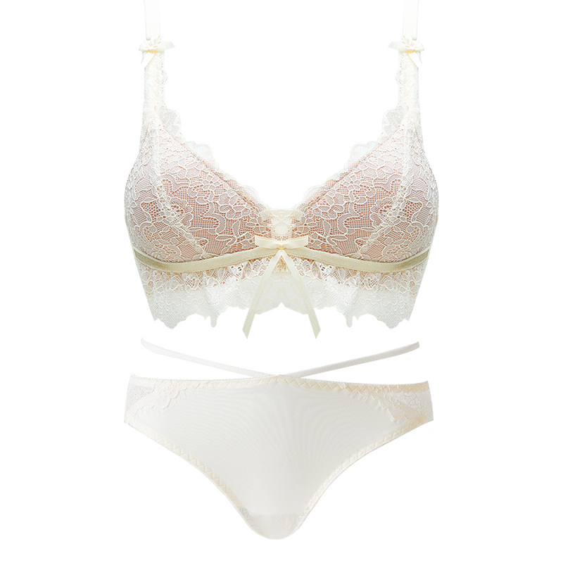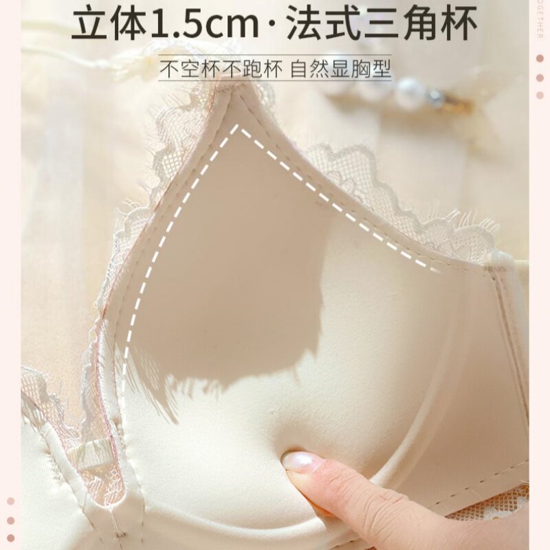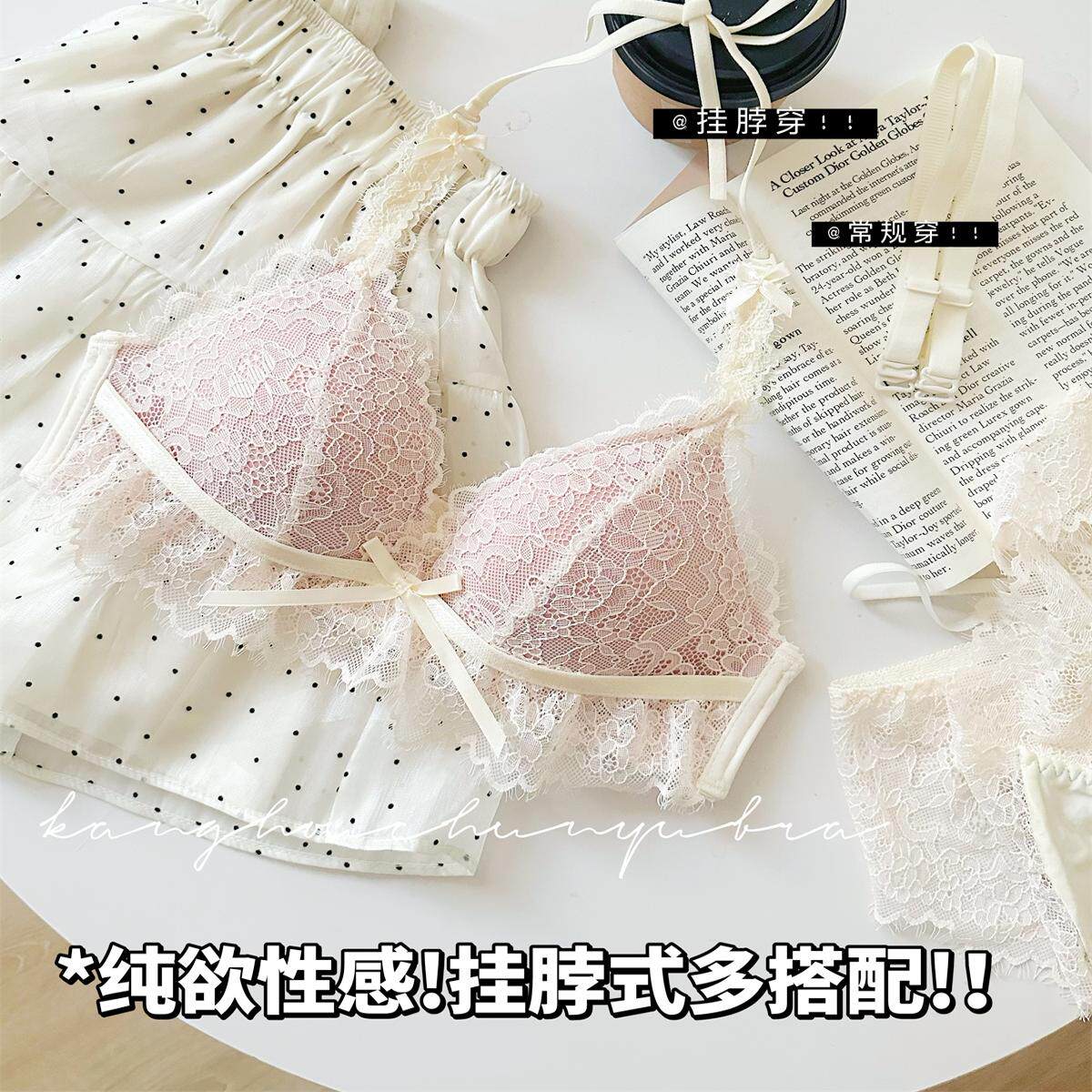 品牌蕾丝纯欲内衣裤套装女三角杯挂脖式上托聚拢无钢圈收副乳文胸