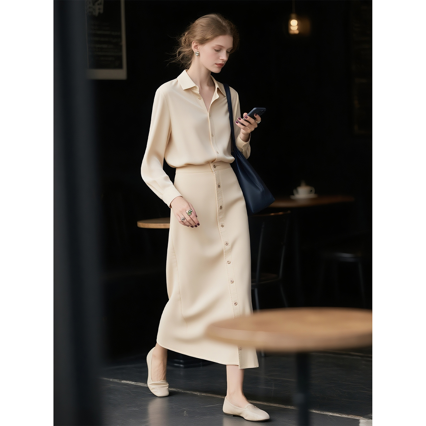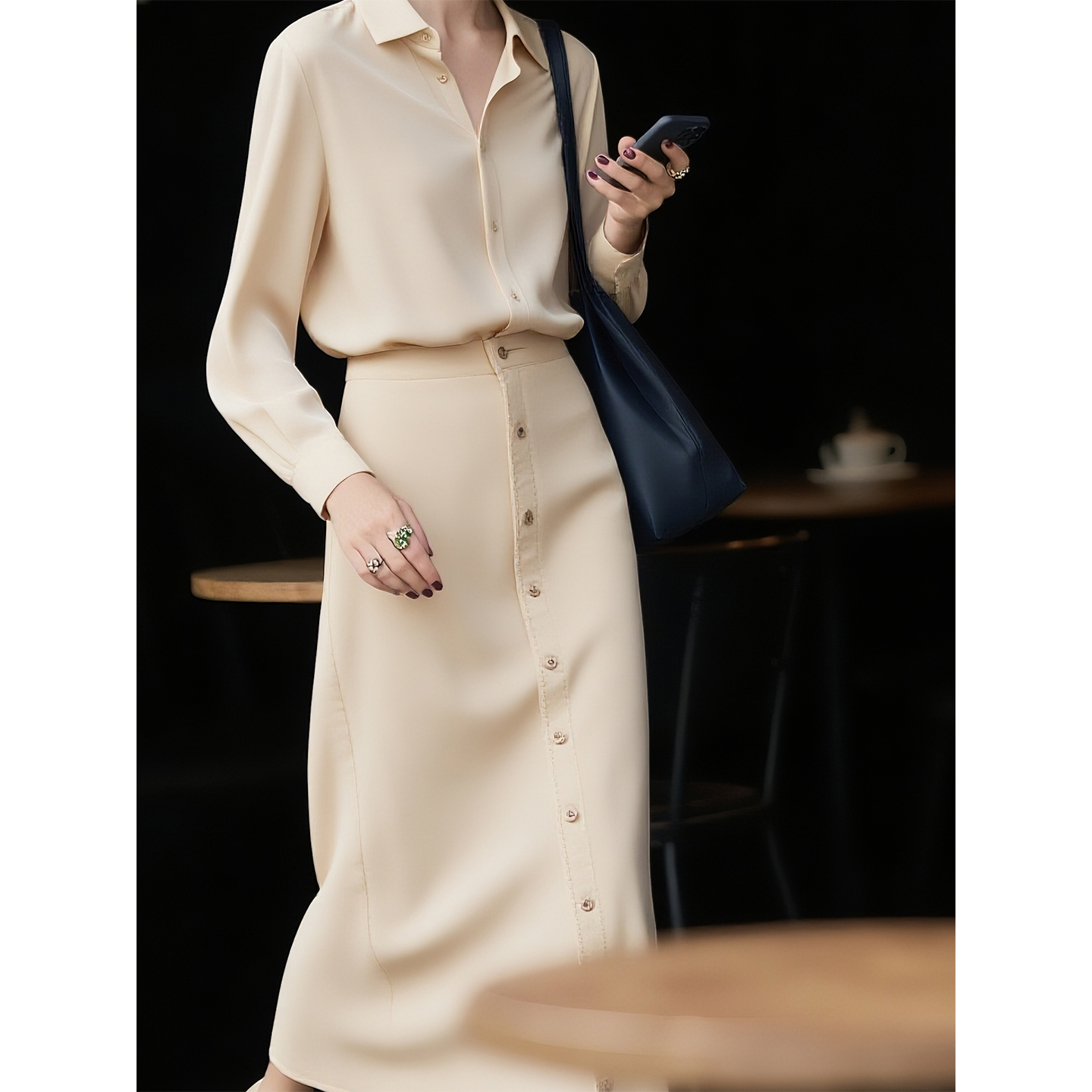 杏色套装裙女2025年秋季新款高级感轻奢衬衫半身裙两件套早秋穿搭