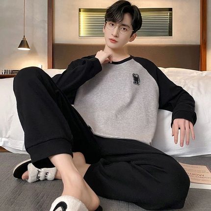 新款男士睡衣春秋季纯棉长袖韩版运动可外穿全棉加大码家居服套装