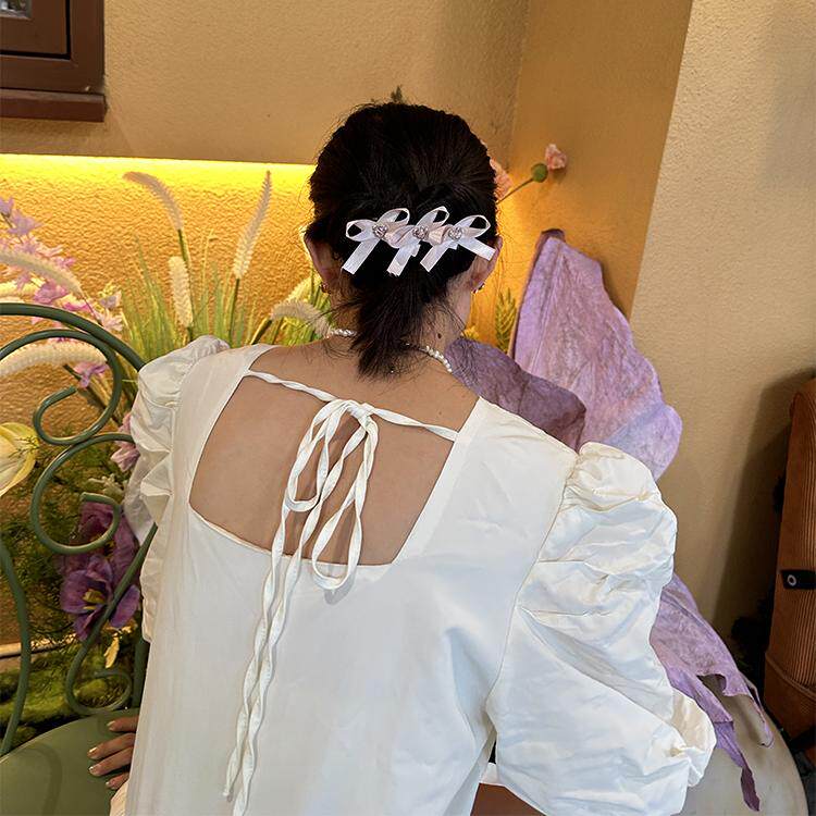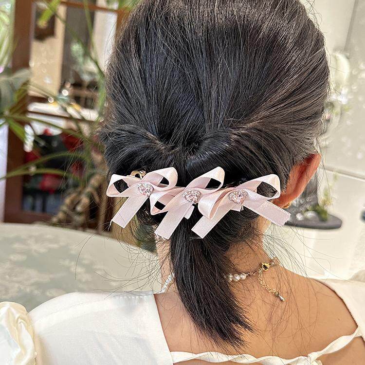 日韩甜妹公主风粉色蝴蝶结爱心发夹弹簧夹简约气质小发卡织带发饰