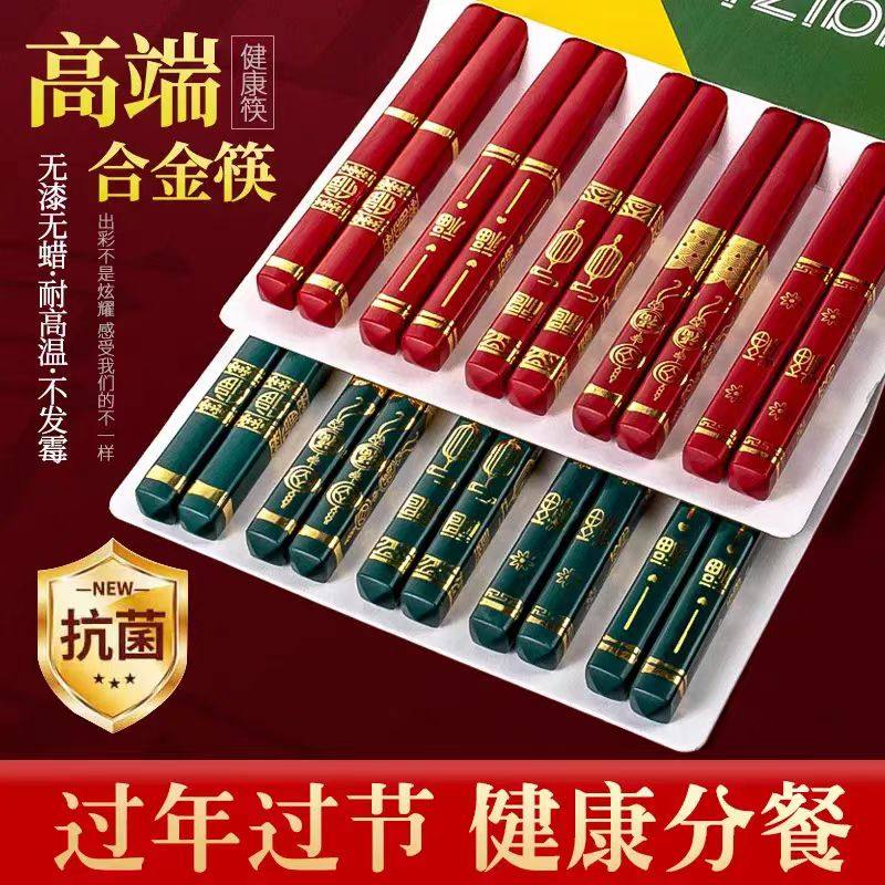 五福合金筷子家用高端家庭2023抗菌防滑防霉酒店餐厅耐高温餐具