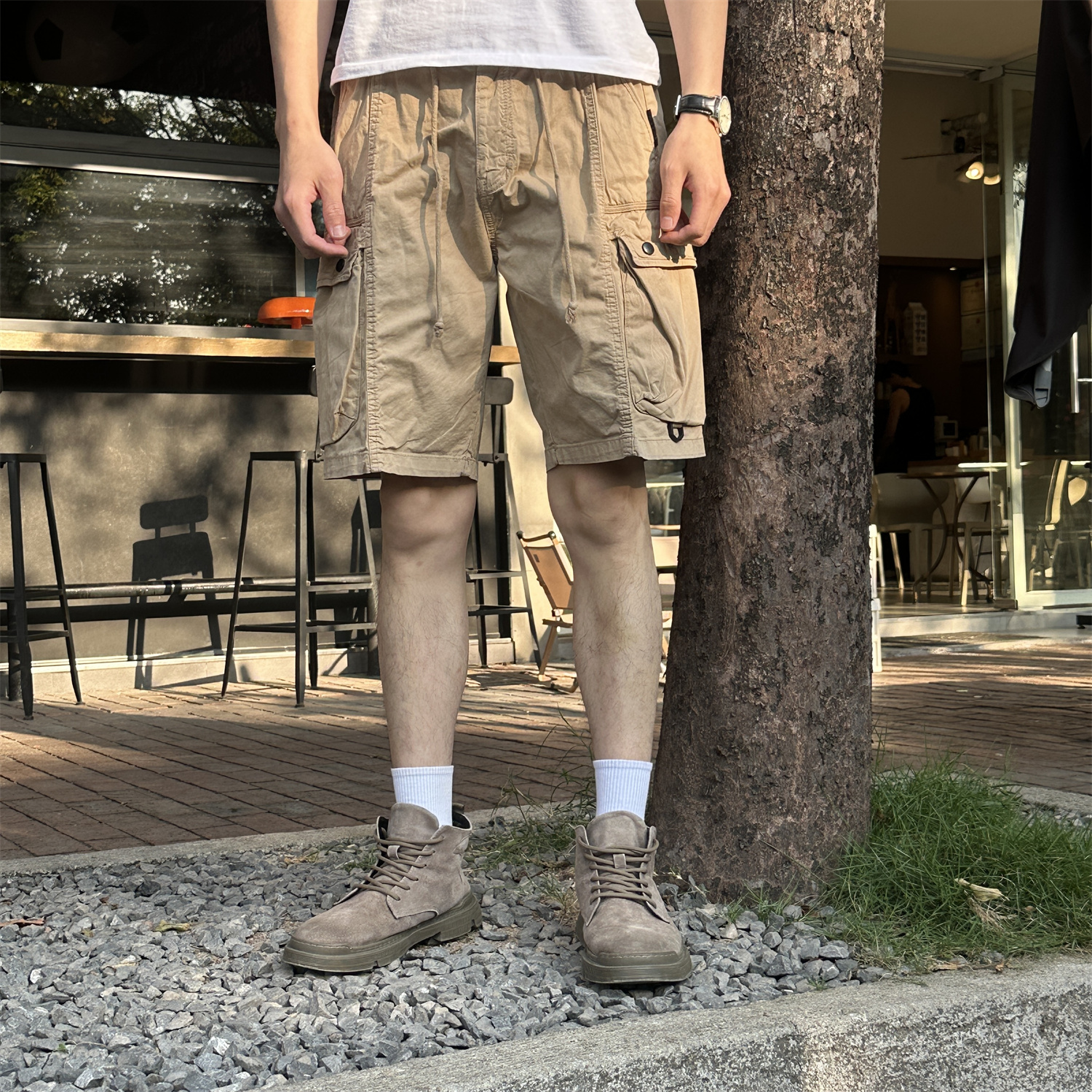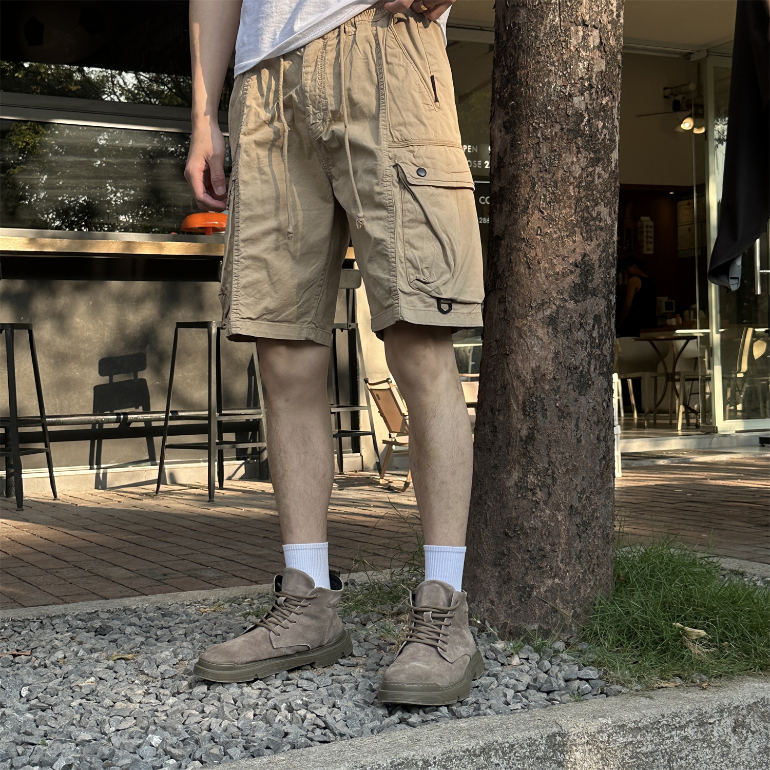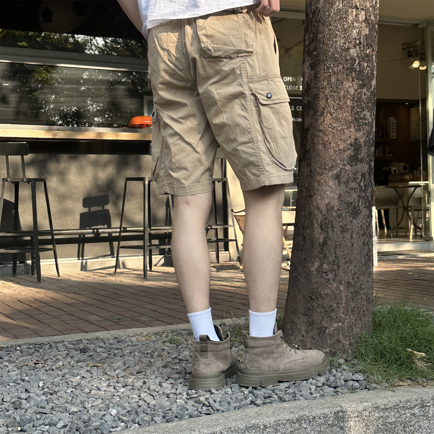 日系夏宽松休闲短裤直筒中裤男五分裤工装裤5分口袋多袋短裤夏天