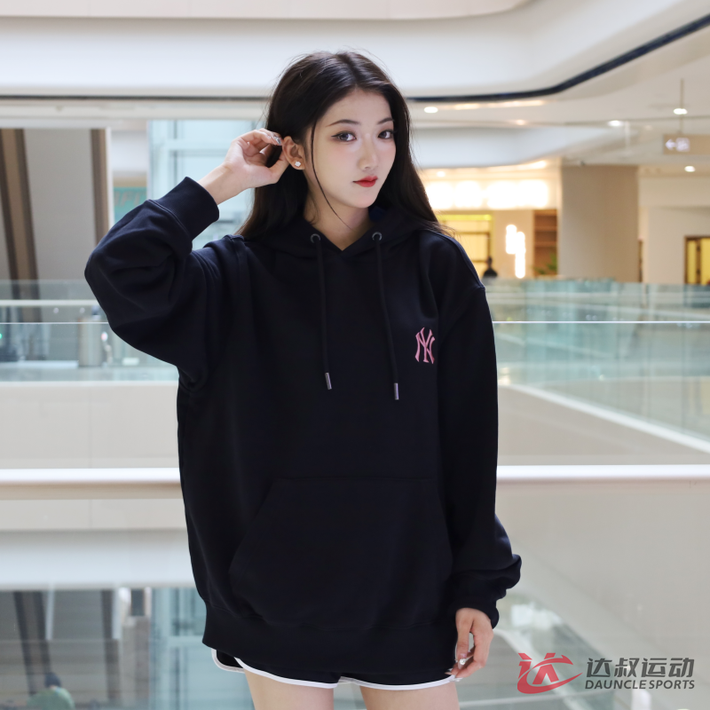 24新款MLB情侣卫衣男女NY复古字母宽松连帽休闲套头衫3AHDN1044