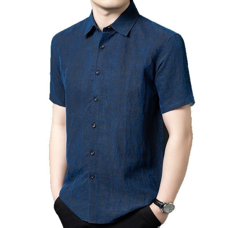 重磅真丝桑蚕丝衬衫男短袖唐装