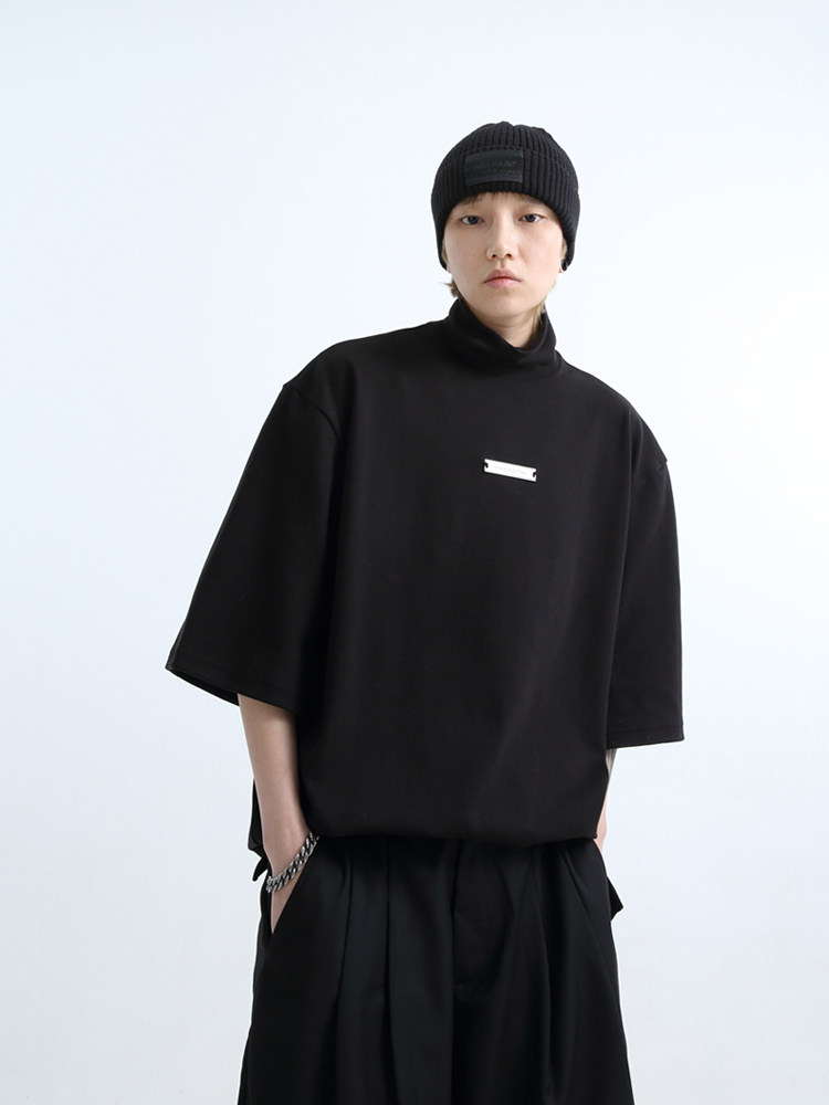 「GRNL」跨季节百搭单品 原创自制oversize小高领男女五分短袖T恤