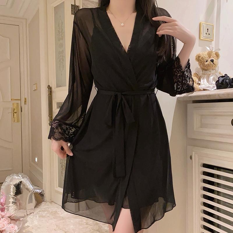 2025款蕾丝性感纯欲风网红吊带裙V字领女睡裙成人私房网纱睡衣套1