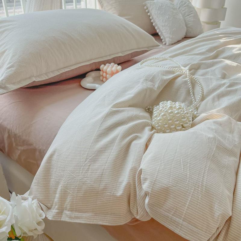 细条纹高克重云柔水洗棉单双人四件套纯色双拼单被套床单床上用品