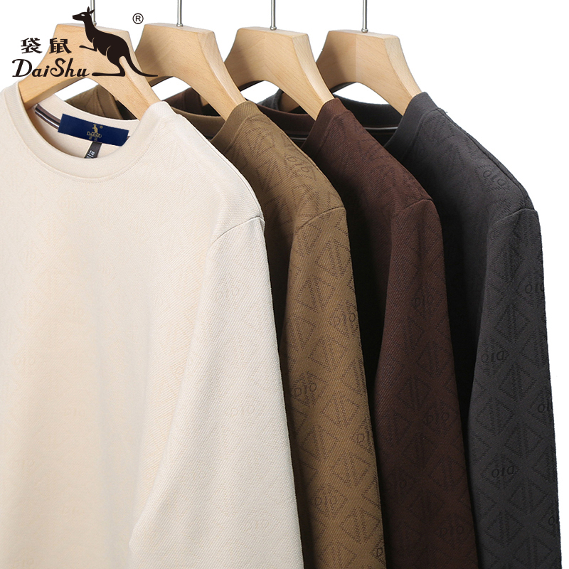 袋鼠2025秋季新款卫衣男圆领高端打底衫爸爸装长袖t恤休闲上衣服