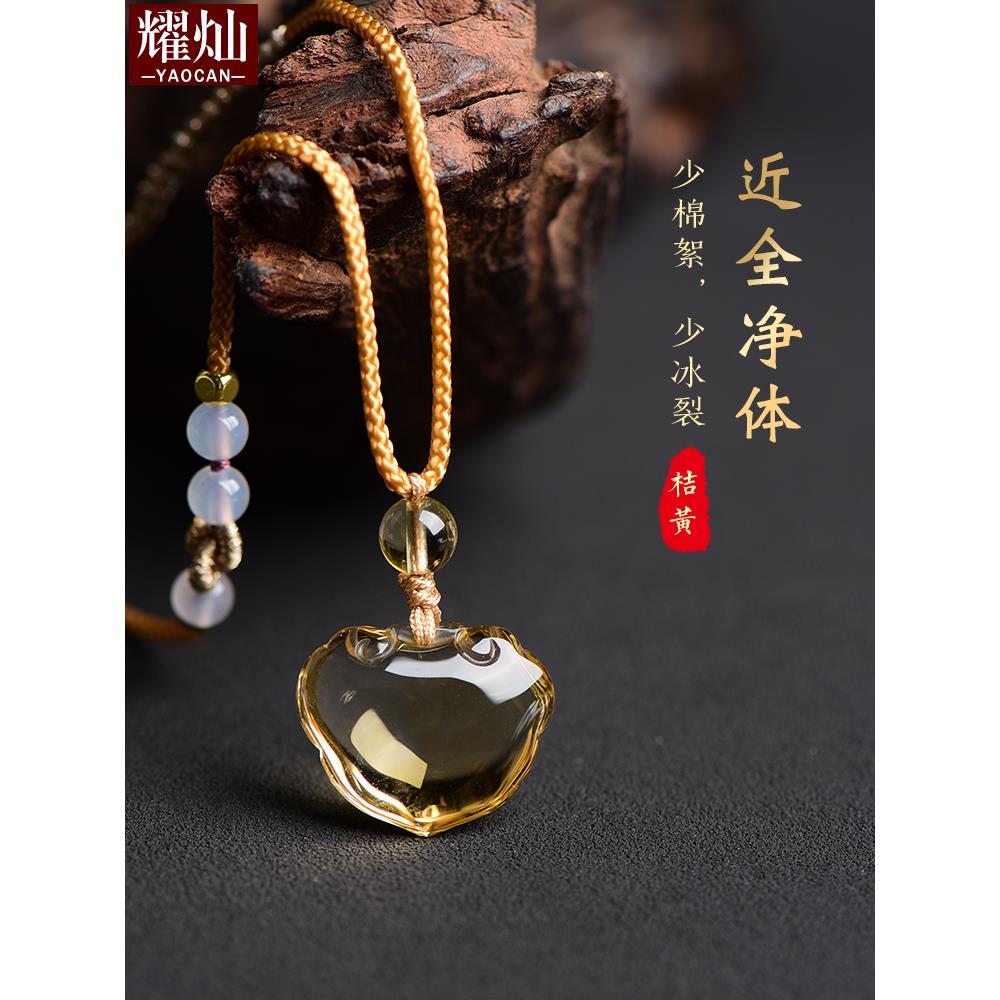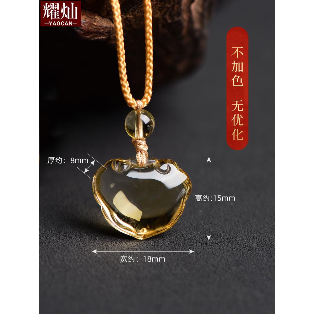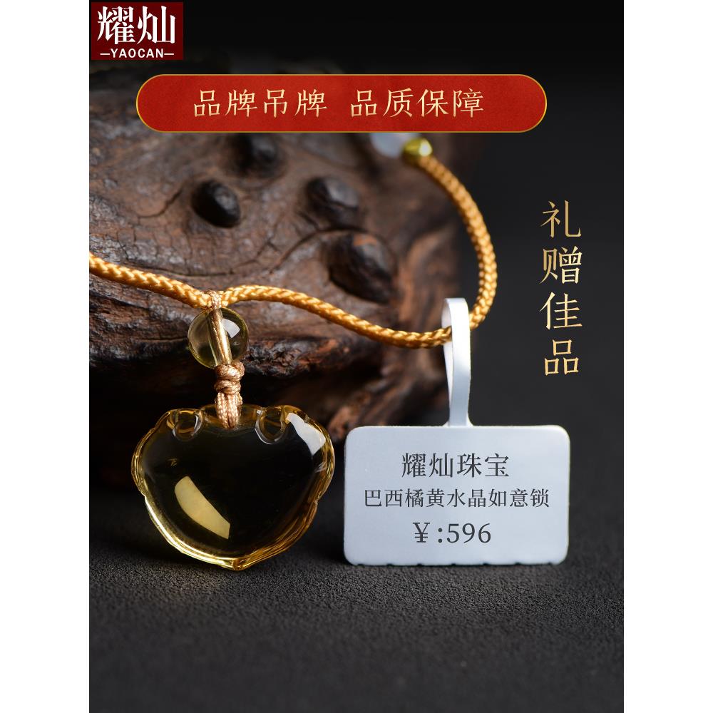 巴西桔黄水晶如意锁吊坠 男女宝宝平安如意长命锁水晶挂件