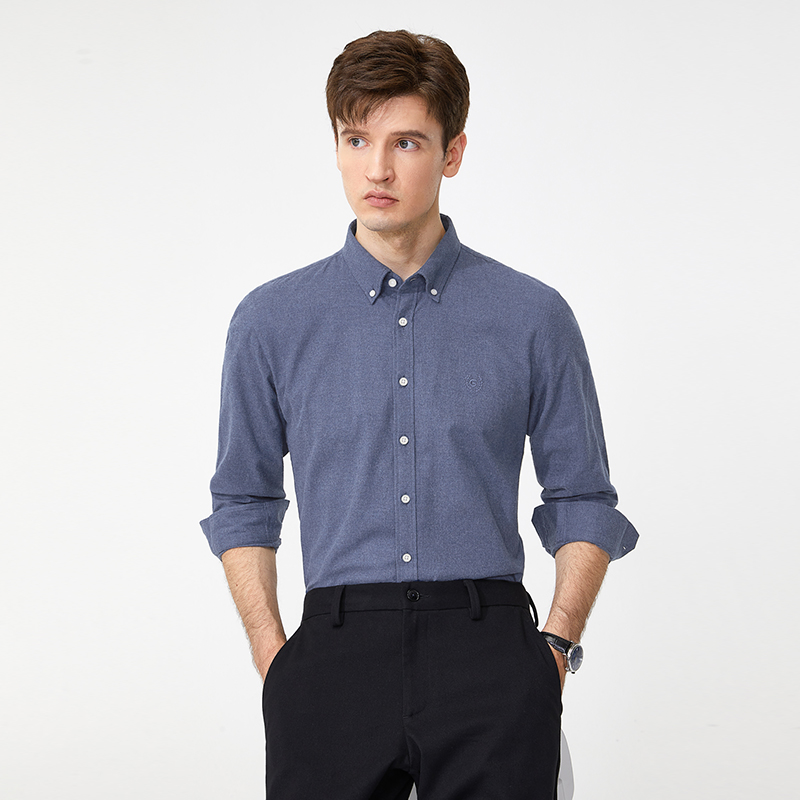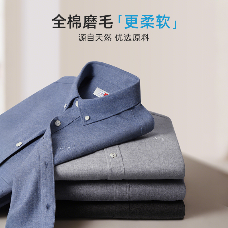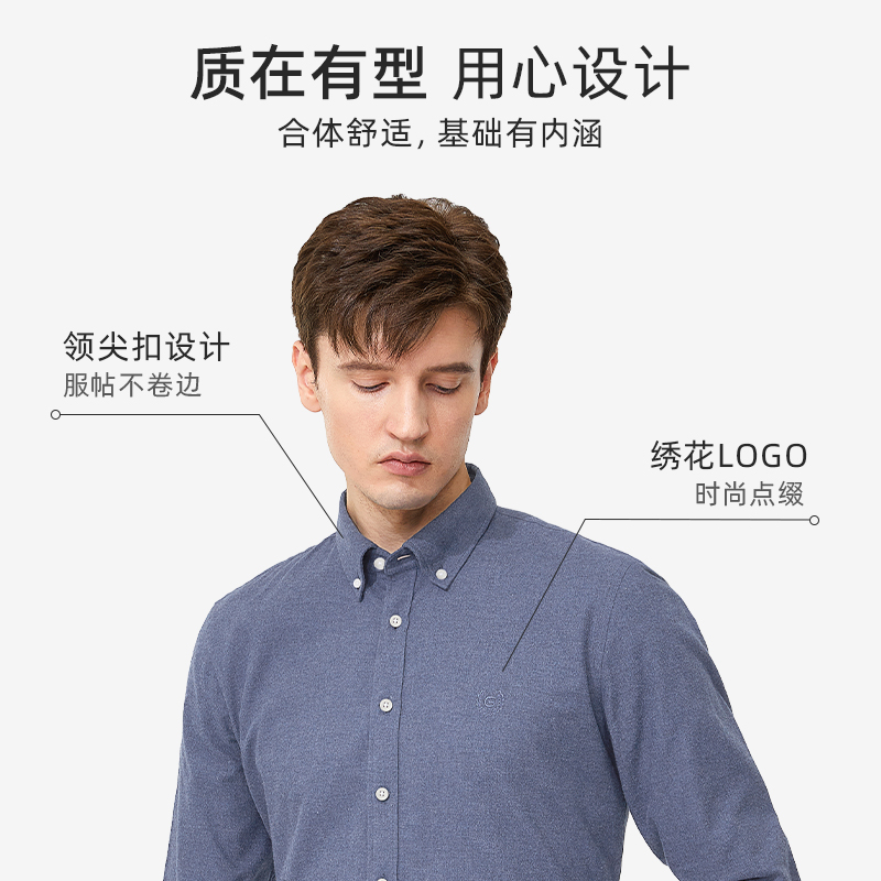 【磨毛舒适】金利来GY长袖衬衫男春秋保暖时尚休闲纯棉打底衬衣