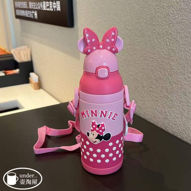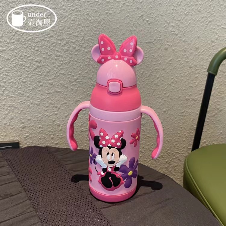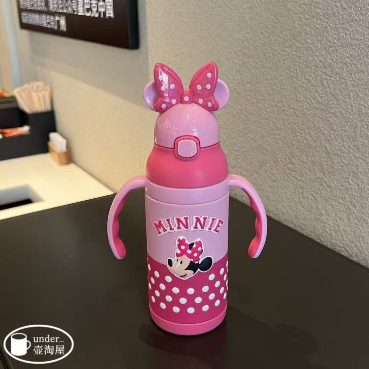 迪士尼 WD-3443 3440 米妮 米奇 不锈钢水壶双耳手柄保温吸管水杯