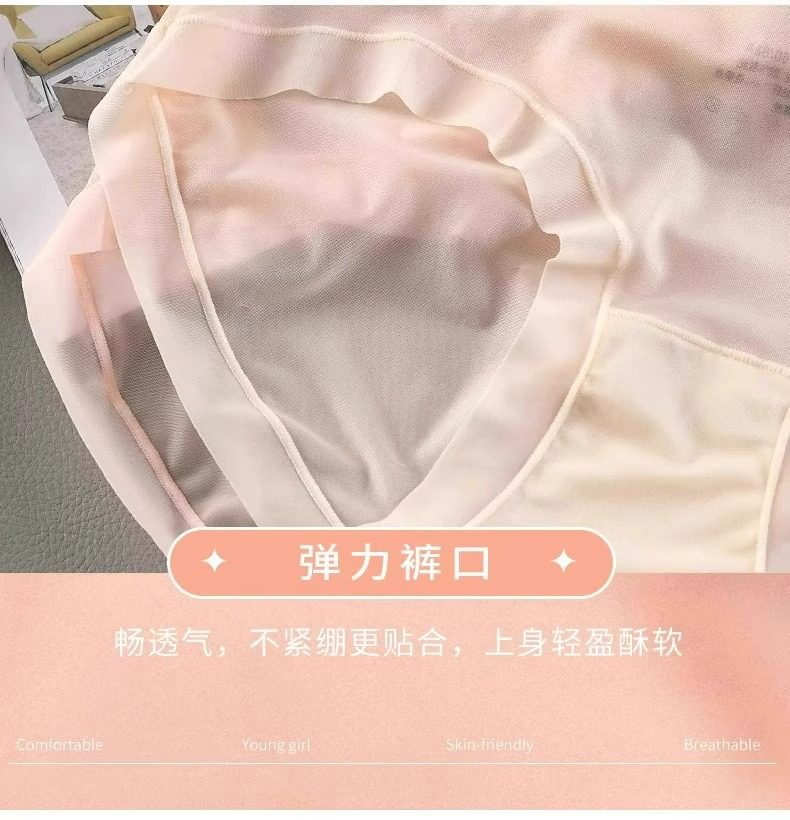 冰丝内裤女士无痕超薄面膜女生蕾丝性感中腰透气纯棉底裆裸感裆部