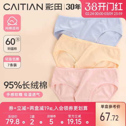 彩田纯色纯棉内裤女低腰新疆棉质面料四季款透气简约三角裤女士