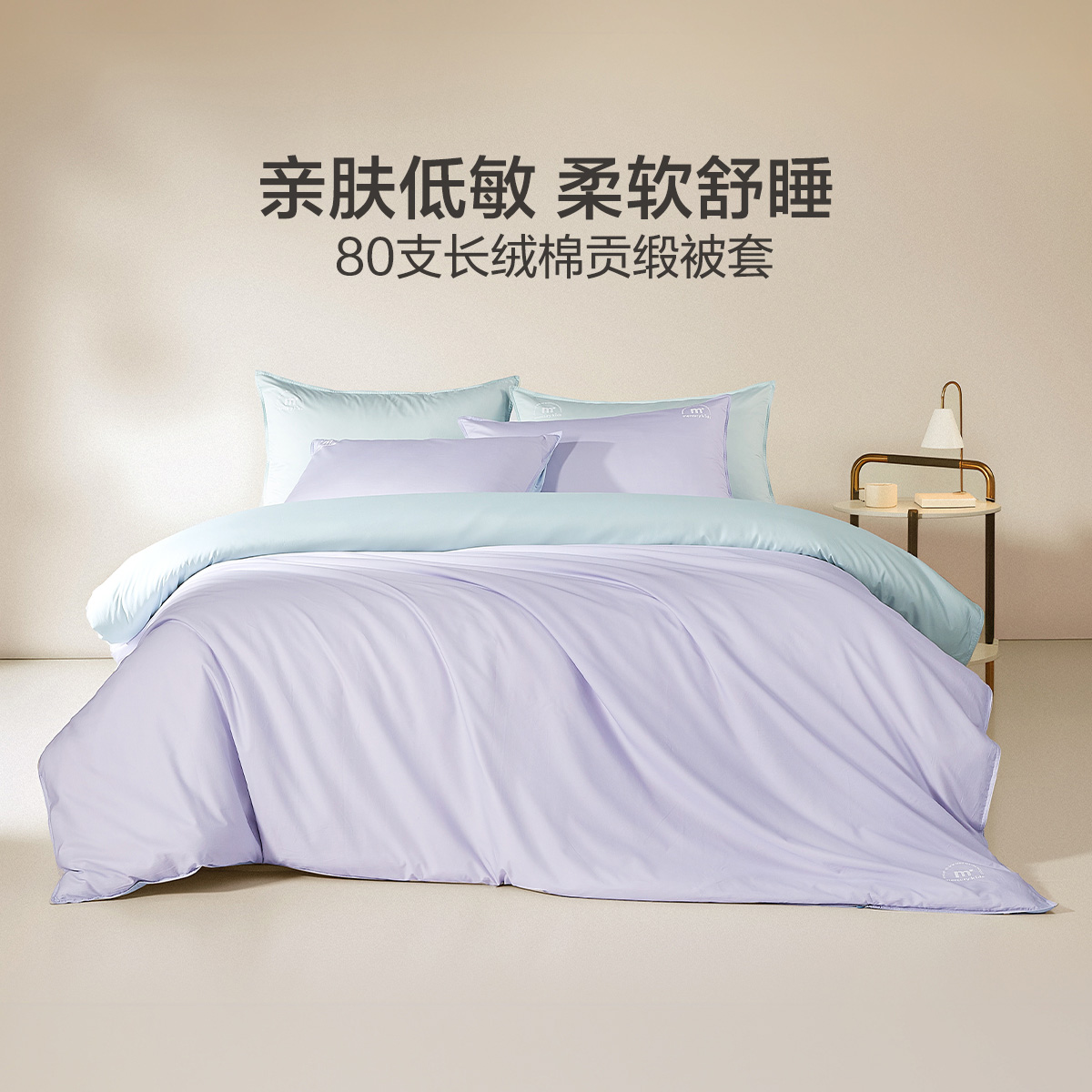 水星家纺儿童抑菌低敏被套单件80支长绒棉贡缎被子罩宝宝简约床品