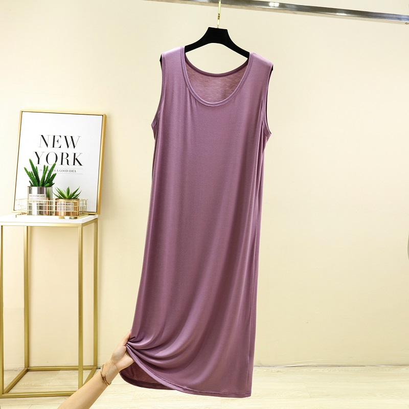 女夏季薄款莫代尔无袖背心裙宽松睡裙家居连衣裙宽松中长款打底裙