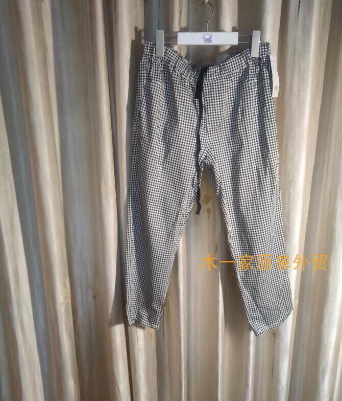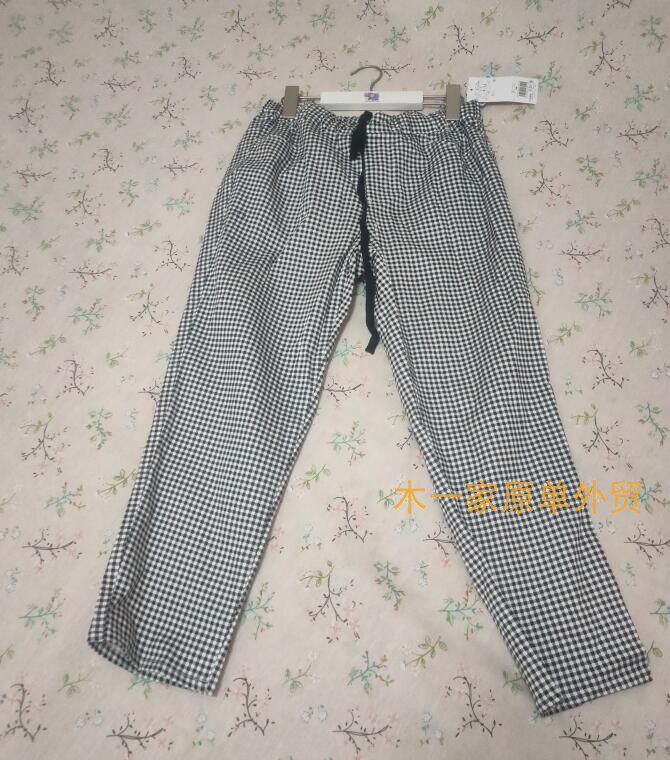 夏季显瘦宽松高腰黑白格子9分裤 女