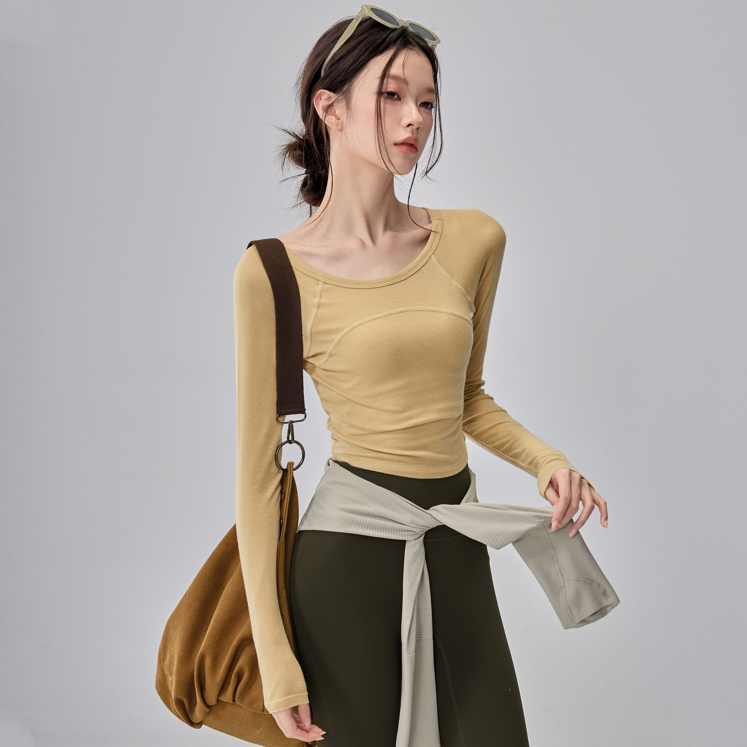 TEETKE瑜伽服长袖女秋冬莱赛尔羊毛运动上衣速干跑步训练健身套装