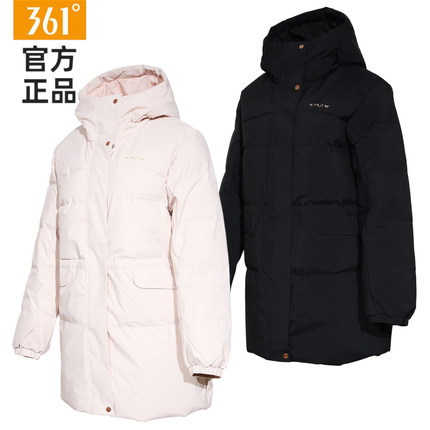 361度女装轻便保暖雨屏科技中长款羽绒服2025年冬女防风运动外套