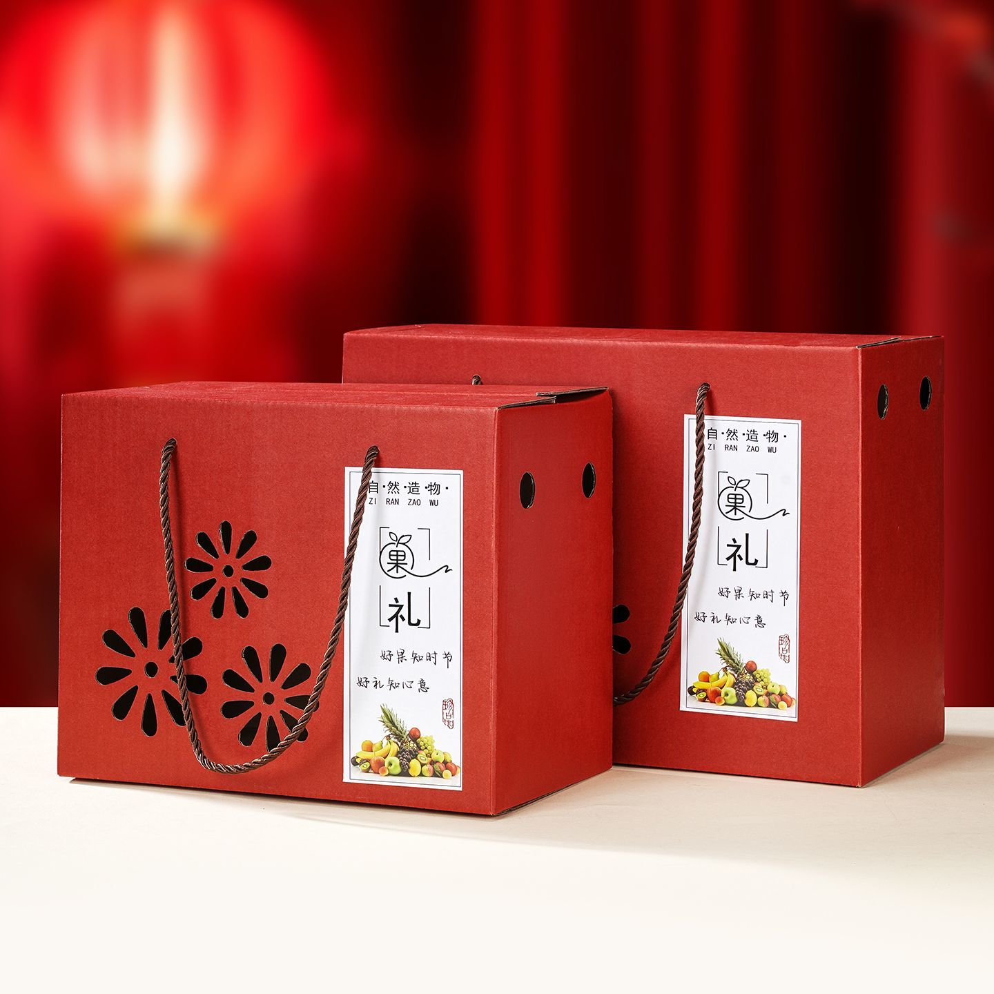 红色礼盒包装纸提平口屋顶