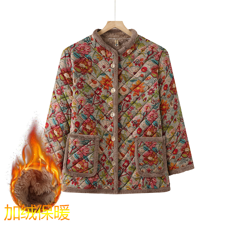 200斤冬季加肥加大码棉衣袄中老年女装胖妈妈装加绒棉衣气质外套
