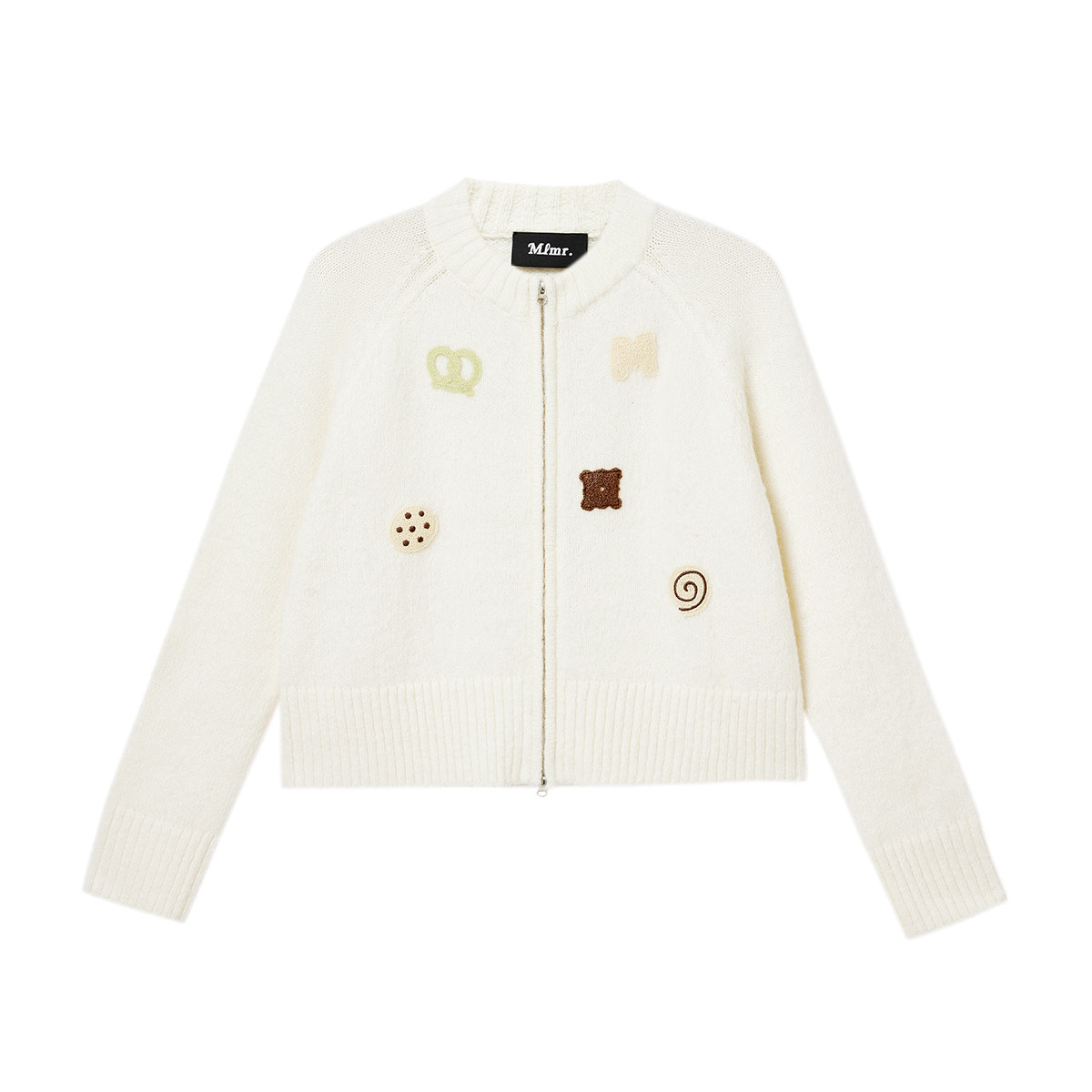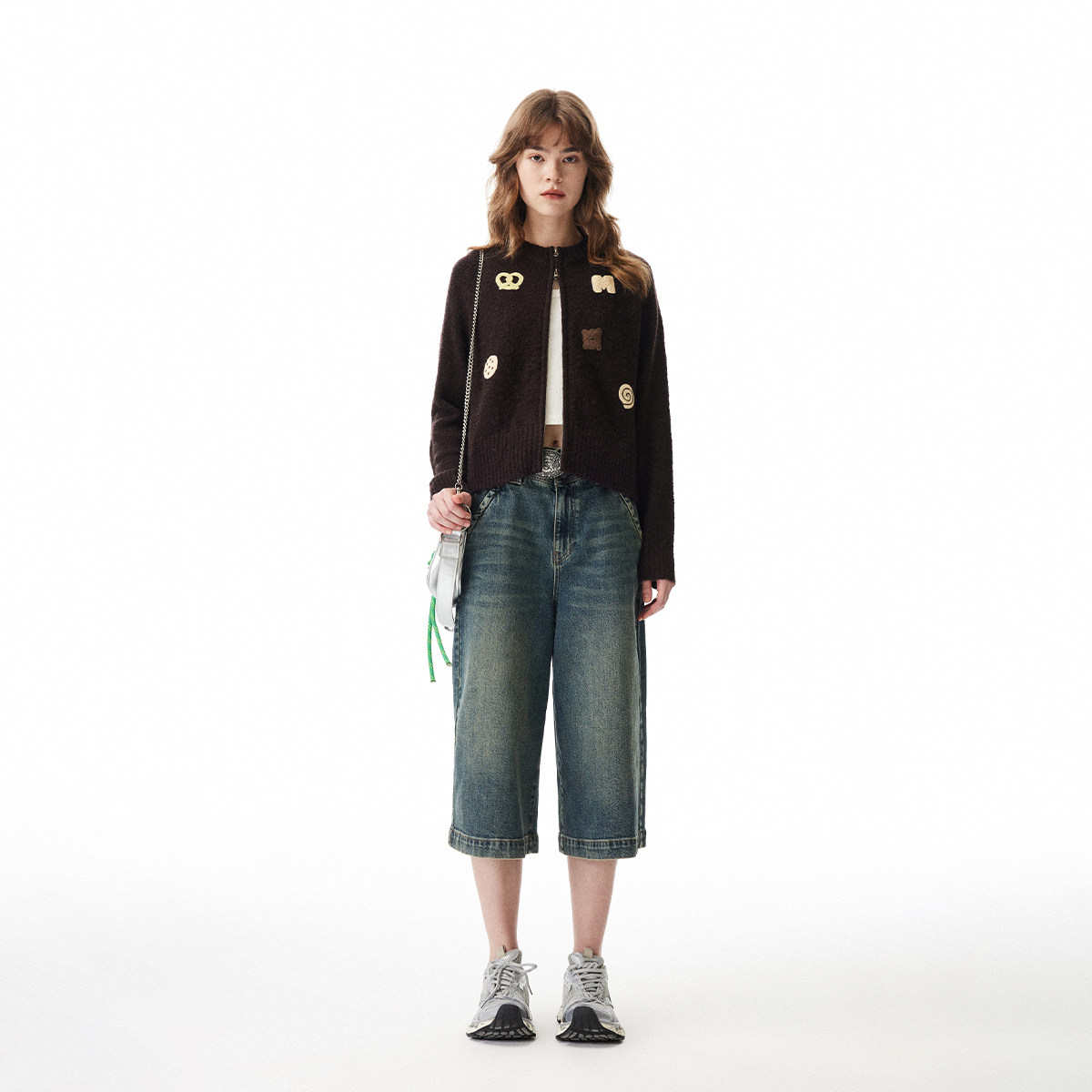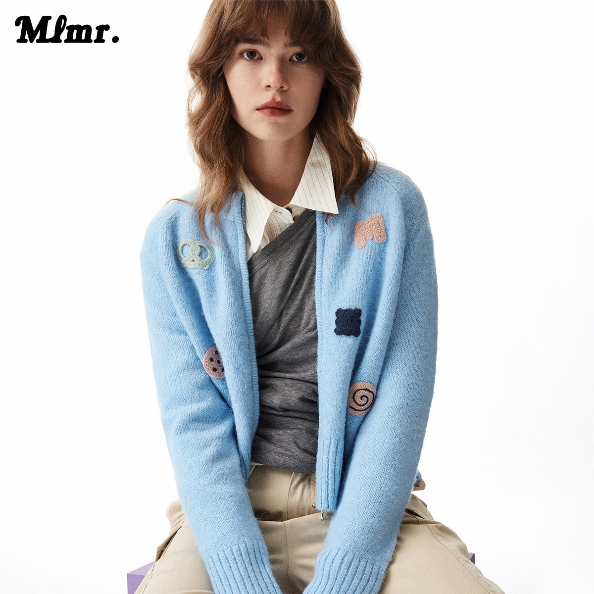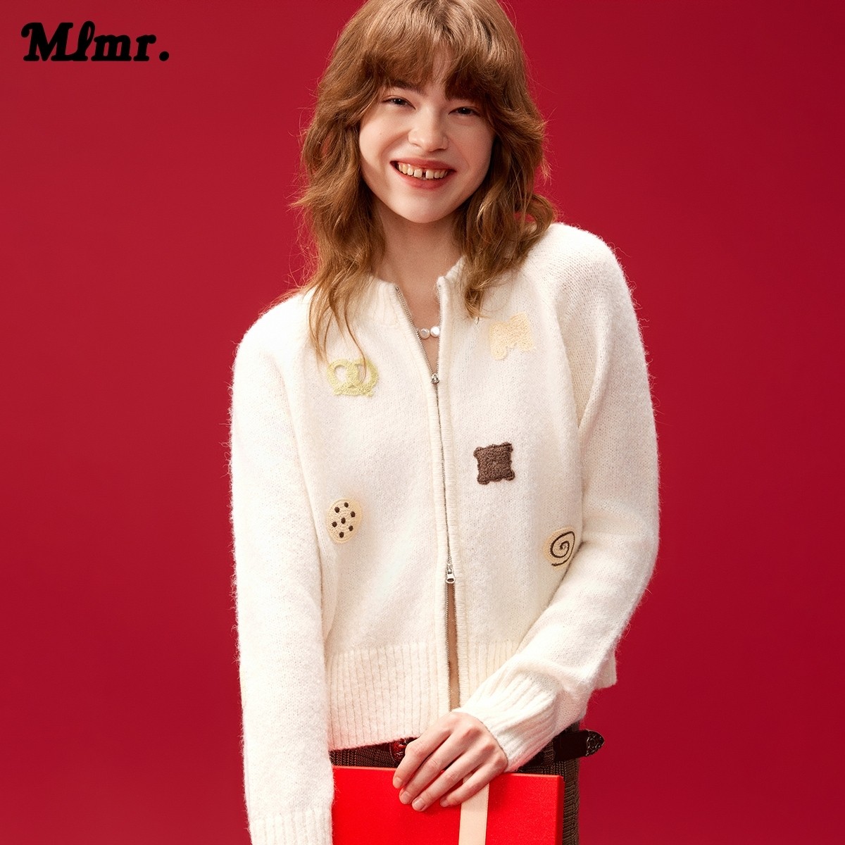 绫致MLMR冬季新款百搭风含羊毛短款双向拉链撞色针织衫毛衣男女