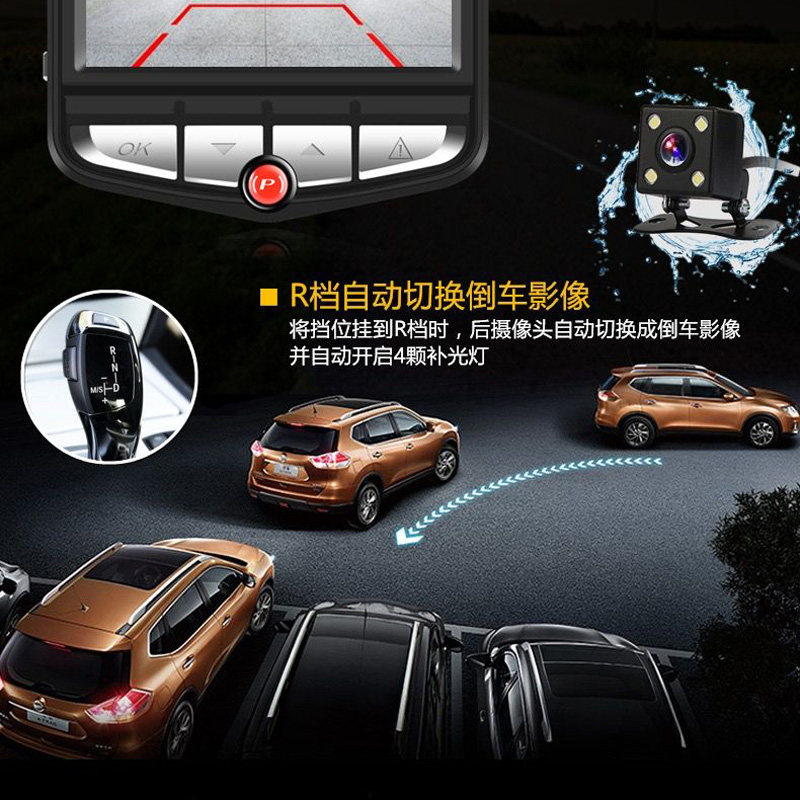 盾牌车载行车记录仪1080P高清夜视双镜头汽车倒W车影像停车监控
