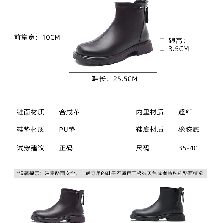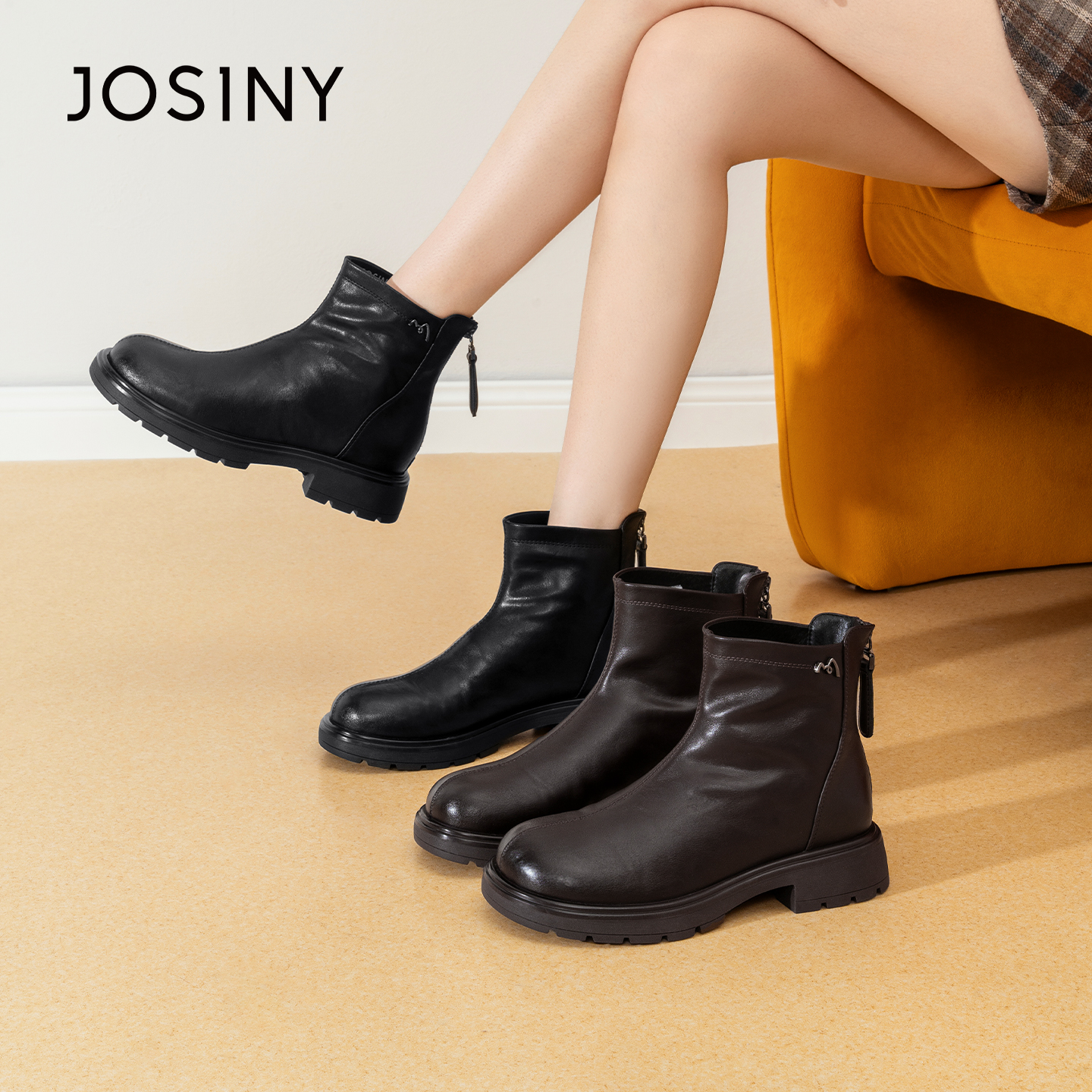 Josiny/卓诗尼JOSINY厚底短靴女2025新款增高马丁靴瘦瘦靴