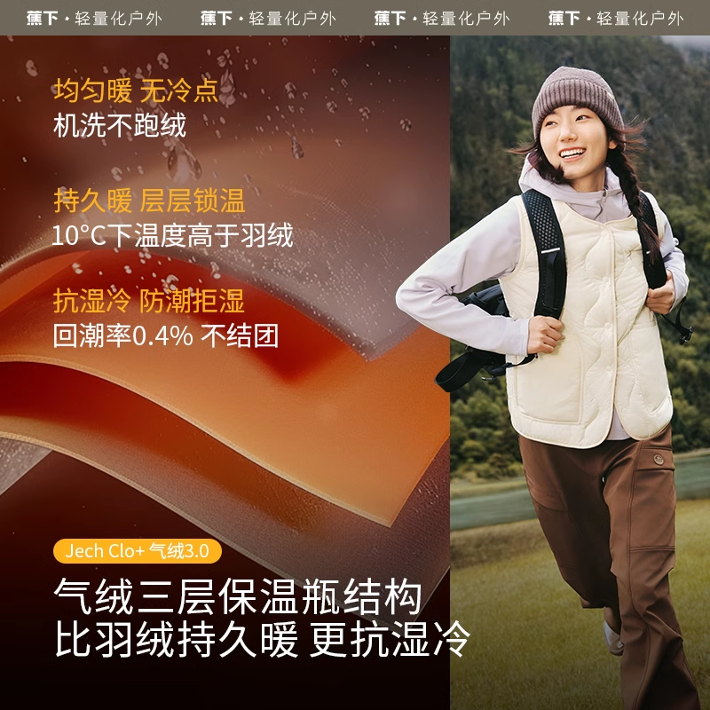 蕉下气绒马甲女24早秋新款轻薄叠穿内胆保暖似羽绒防风背心马夹