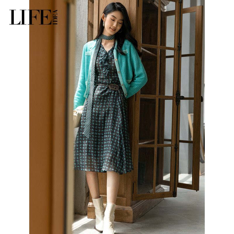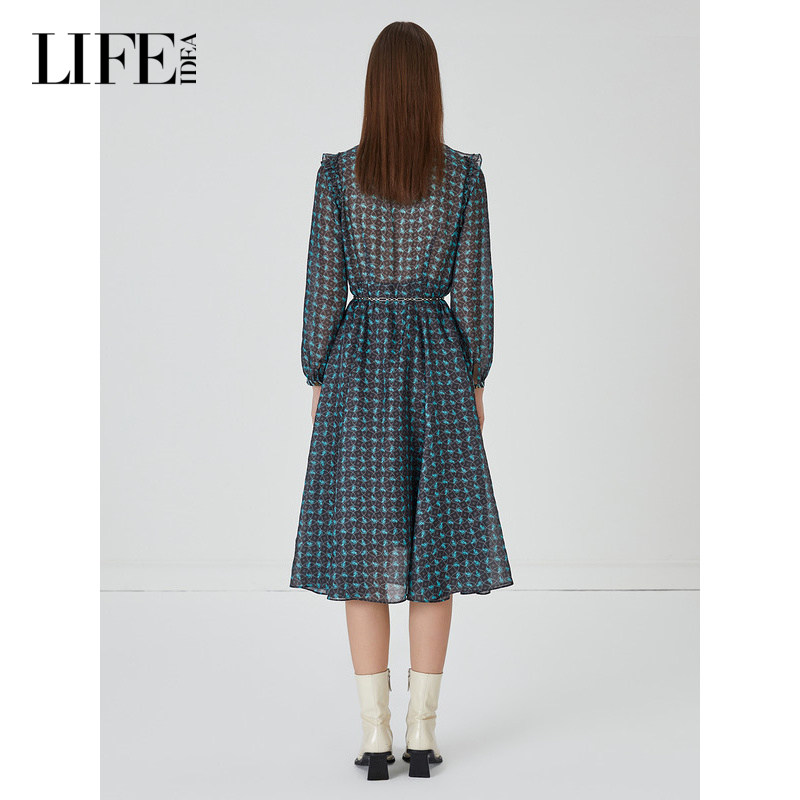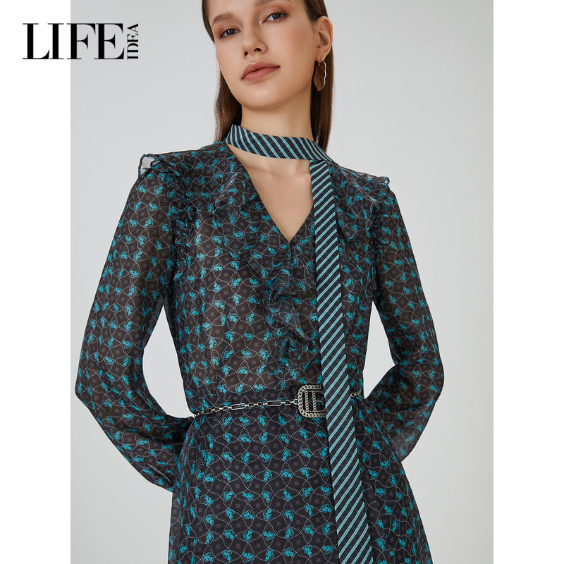 莱芙·艾迪儿艺术星空秋季新款浪漫灵动连衣裙女V领裙子