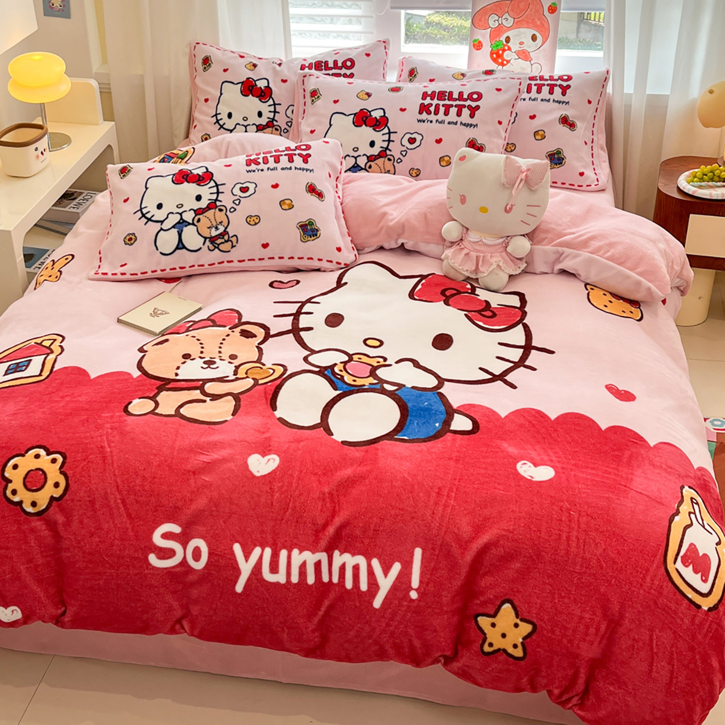 helloKitty冬季加厚牛奶绒四件套珊瑚绒床笠儿童床单被套三件套女