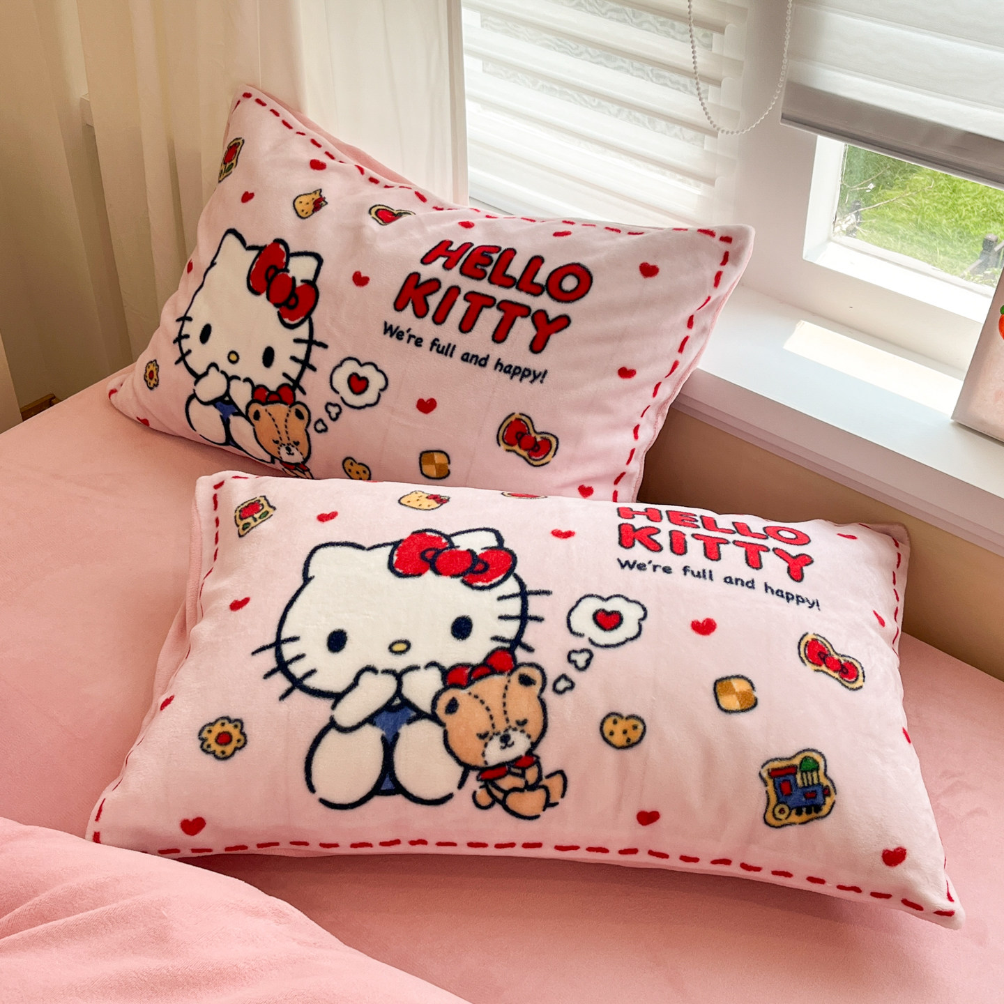 凯蒂猫儿童牛奶绒四件套冬季加厚