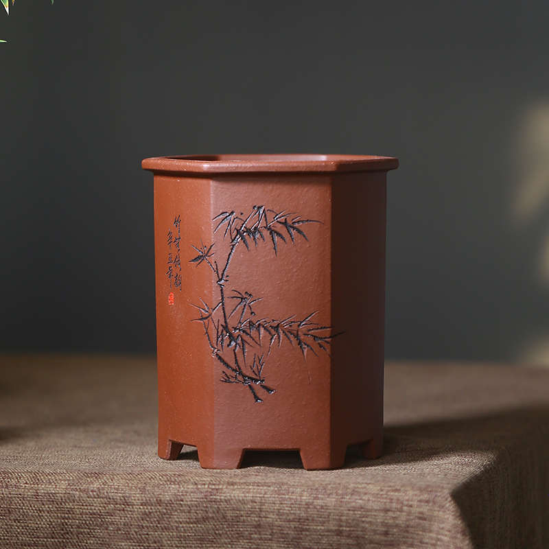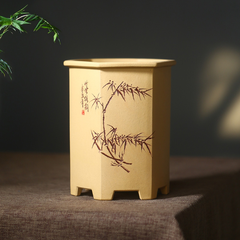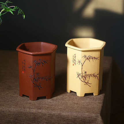 紫砂花盆 盆景盆 兰花盆六x方多肉植物绿植桌面中国风陶瓷花盆