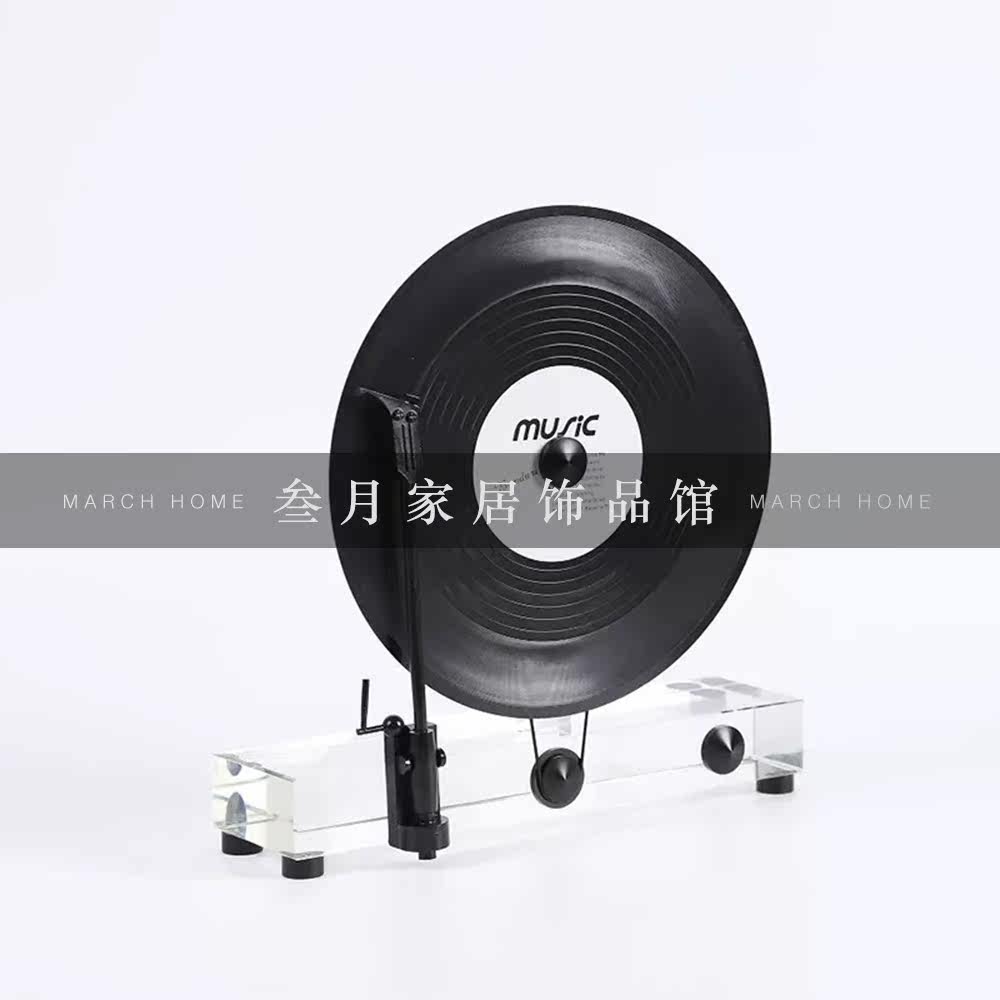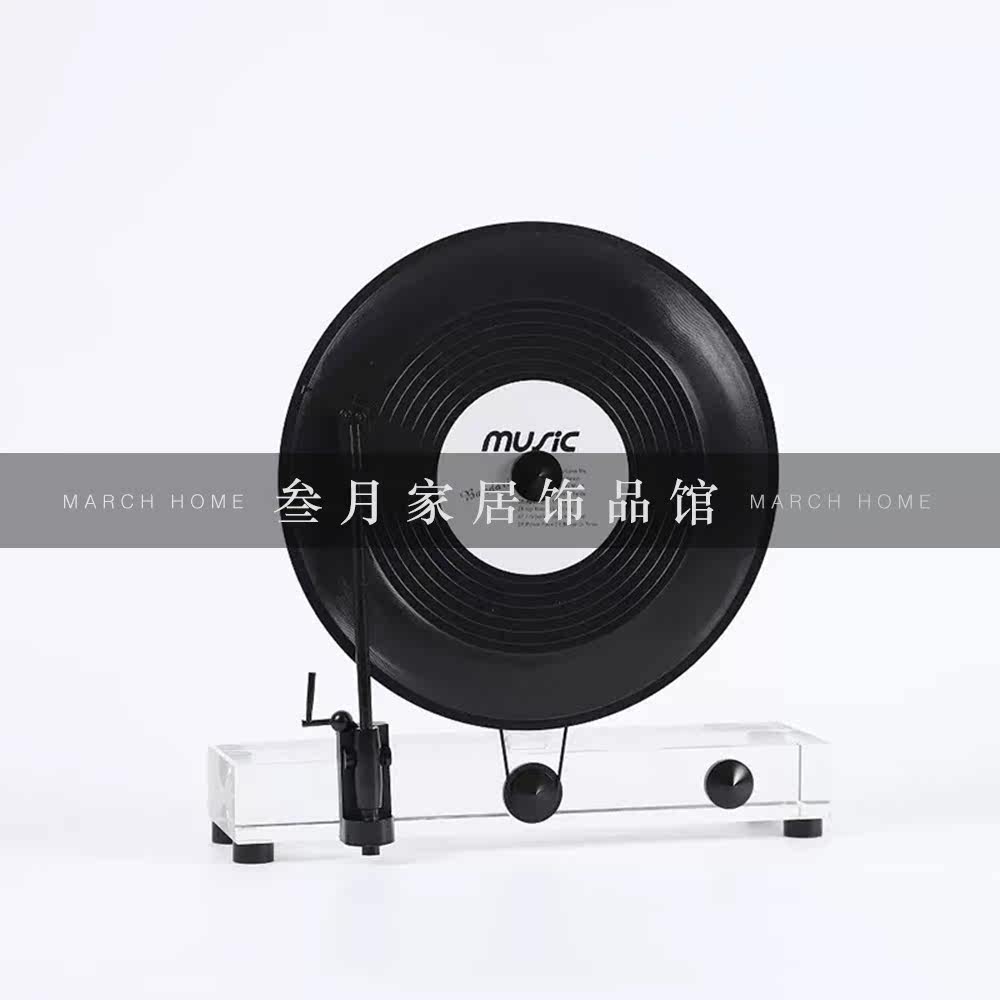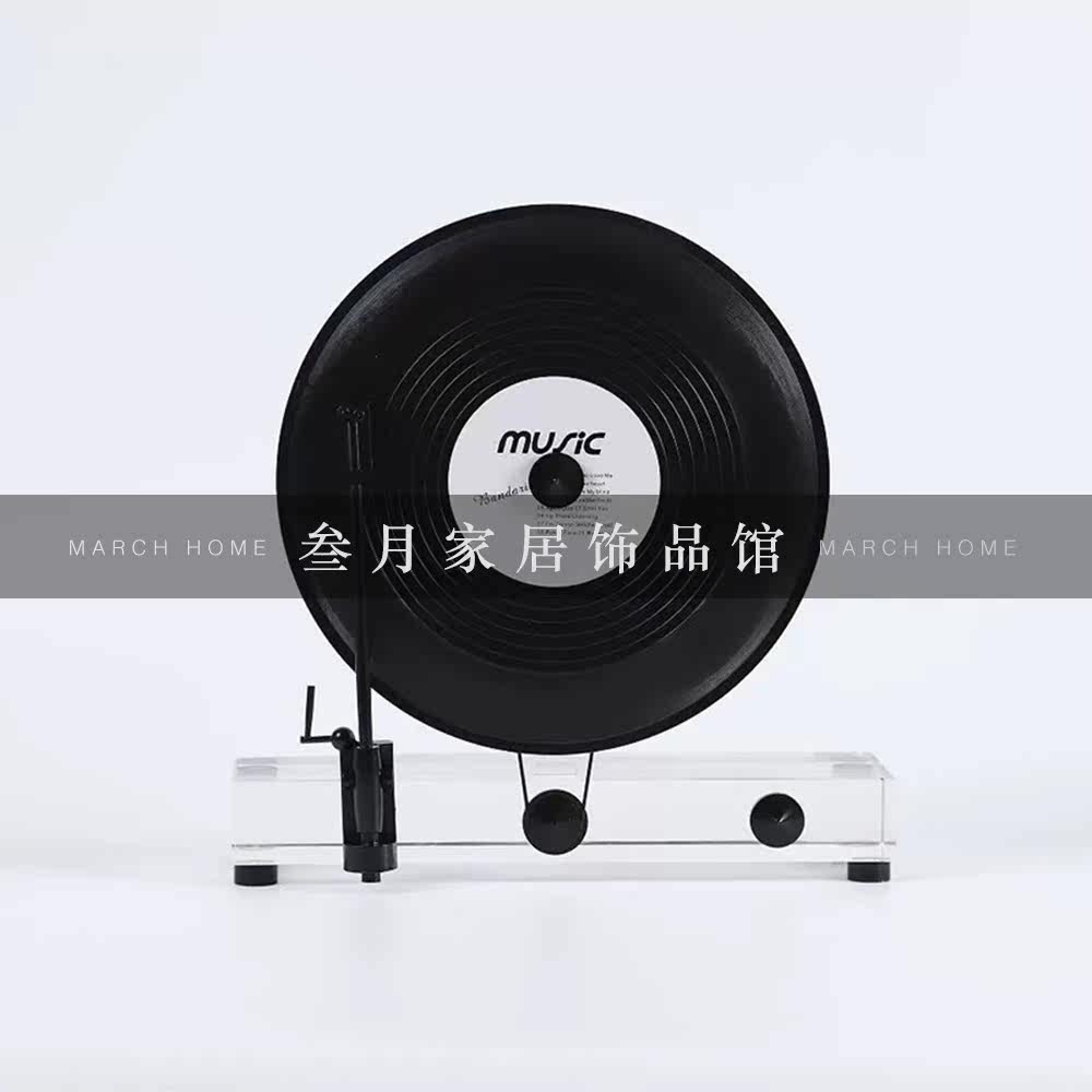 轻奢样板间复古立式留声机水晶黑胶唱片装饰品摆件餐厅书房搭配