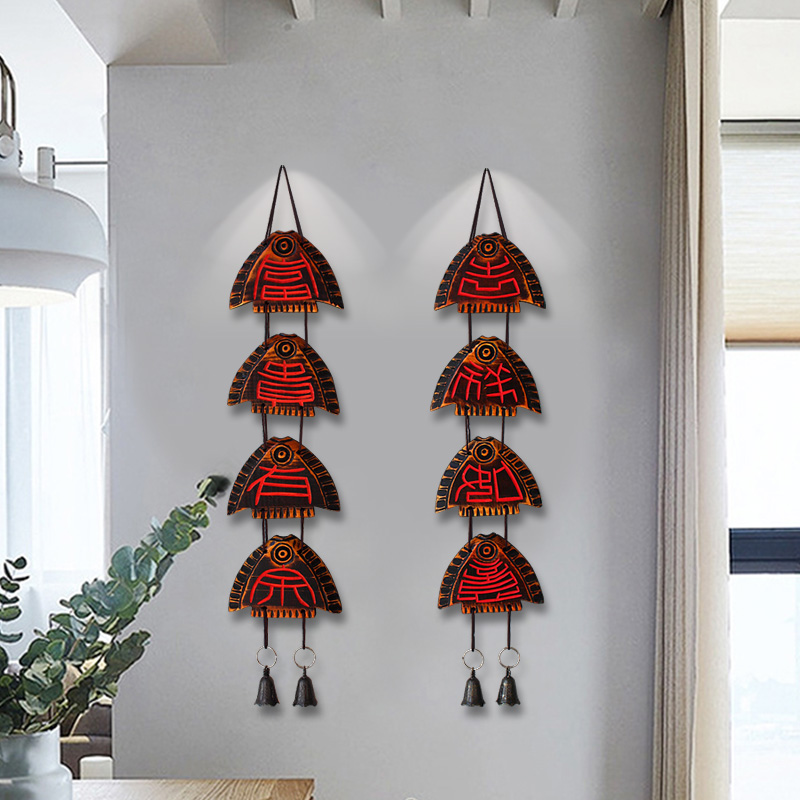 家居中古风装饰品墙面木质小风铃木雕壁饰过道挂件墙饰房间门挂饰