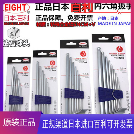 日本进口百利内六角扳手TLS-9加长球头平头六角匙套装加硬螺丝刀