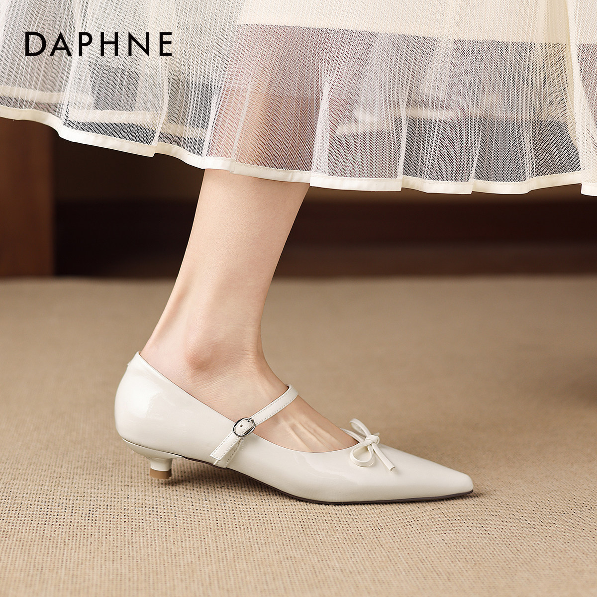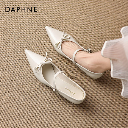 达芙妮白色单鞋女2026新款春季法式气质玛丽珍小皮鞋尖头细跟单鞋
